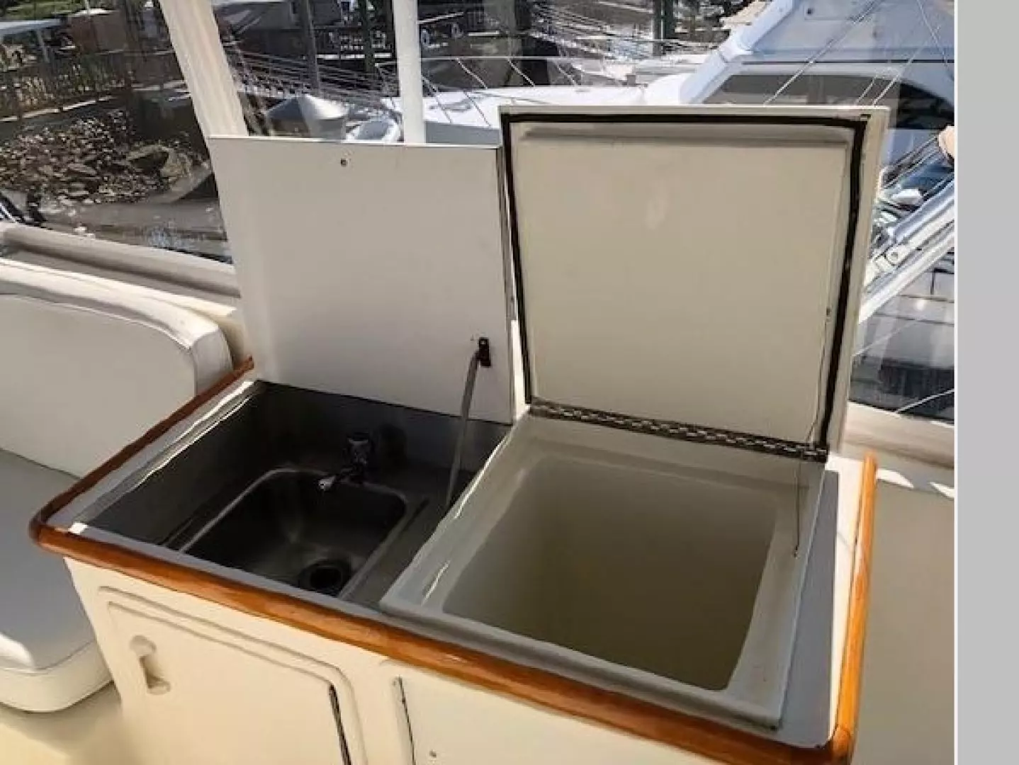 - Galley boasts Custom teak cabinetry, marble counter tops, Commercial under counter double refrigerators and freezer