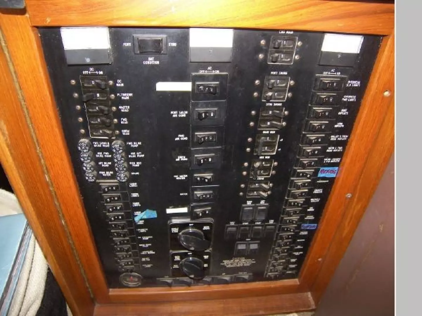 - Electrical Panels w/ Breakers; 32VDC & 12VDC Ships Systems and 240VAC Shore Power