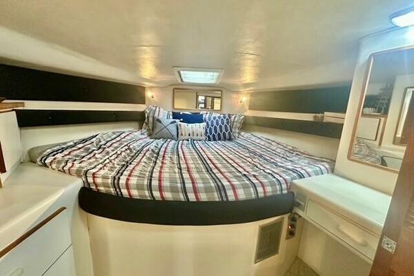 Forward Stateroom w/Privacy-Door, Full-Size Berth, Hanging Storage Locker to Port / Starboard, En-Suite Access to Forward Head
