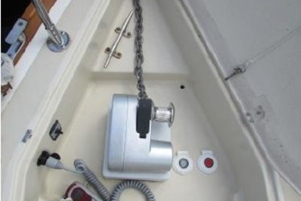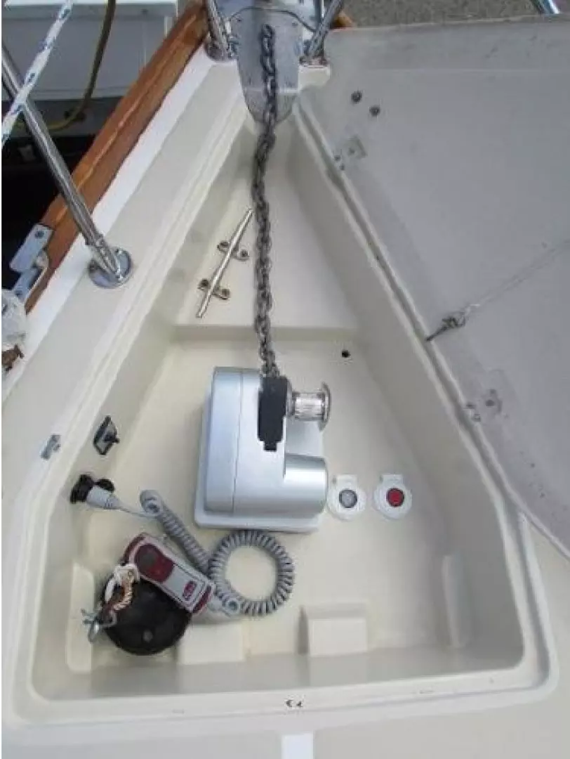 - Quick Genius1000D windlass with remote and foot controls in fore hatch.