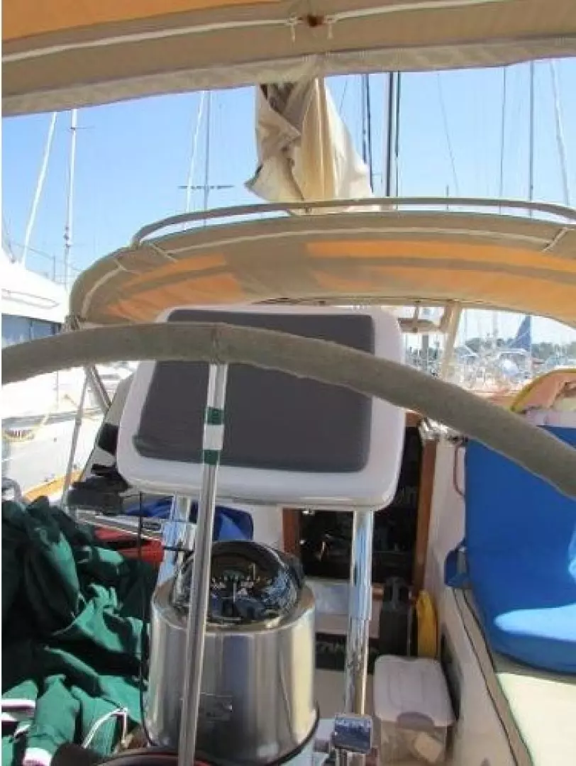 Pedestal cover, winch covers, screens and shades for all hatches, accordion shades on all opening ports. 4 dock lines, 4 fenders, 6 life vests, horn, bell, flare kit 3 fire extinguishers, life sling man over board recovery system, ensign and staff, chrome dorade vents, teak cockpit table, transom swim ladder, teak pad for dinghy engine.