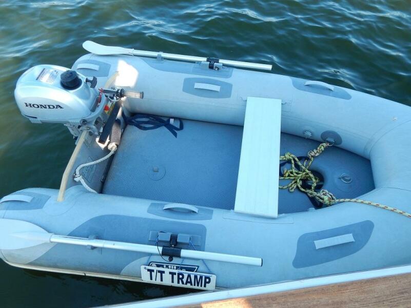 The 7 foot inflatable and 2.3hp Honda outboard can be purchased separately as desired.