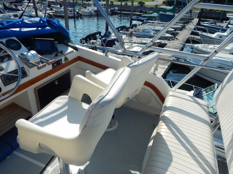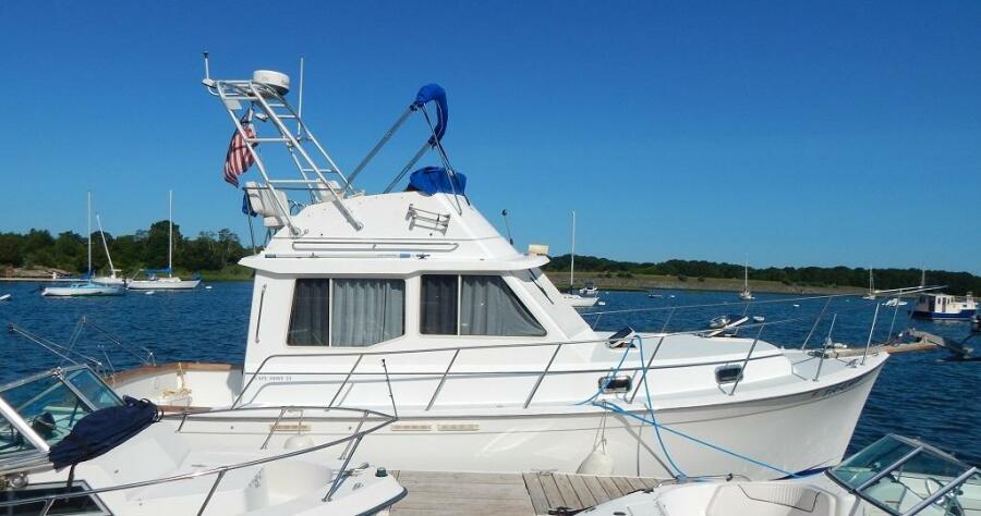 1990 Cape Dory 33 Flybridge with twin Volvo 200 hp diesel engines. Single stateroom layout with large head and separate shower stall. Mechanical updates throughout from 2018 to now.