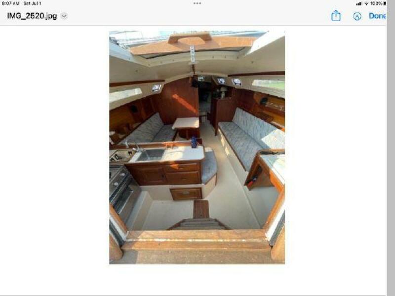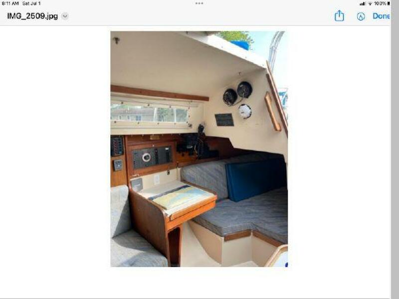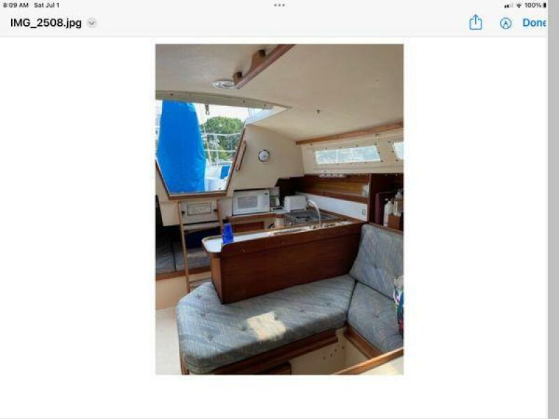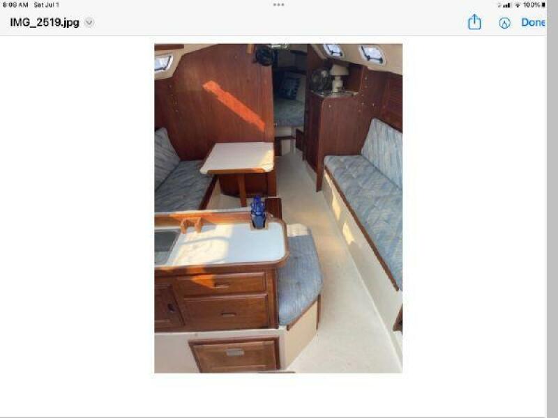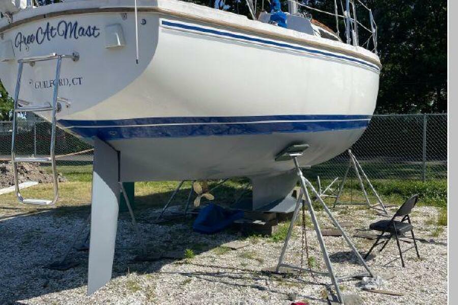 New June listing. The Catalina 30 Mk II is a popular model. Outside, Free At Mast is equipped with a a wing keel, dodger, Bimini top, Garmin GPS chartplotter, radar, Raymarine autopilot, and wind, speed and depth gauges, transom swim ladder, and a Mack Pack lazy Jack system. The roomy interior can accommodate 7 people