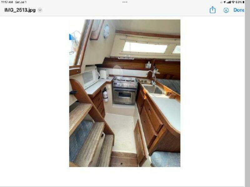 - Galley has 2 burner propane stove with oven, microwave and icebox