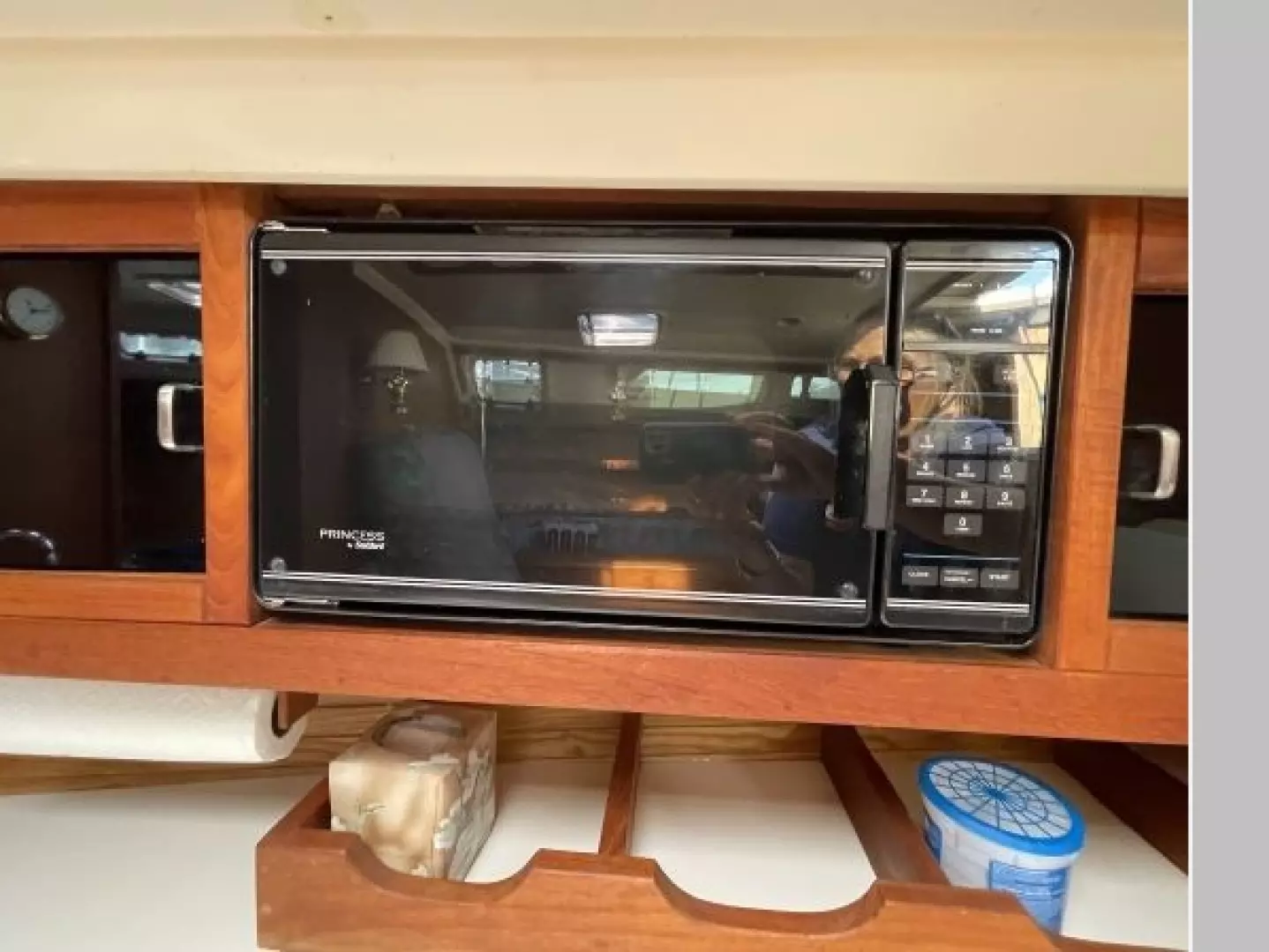 Her large galley has plenty of cabinet space for storage as well as counter space for food preparation;