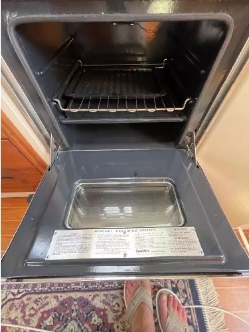 - Double stainless steel sink with hot and cold pressure water and backup foot pump