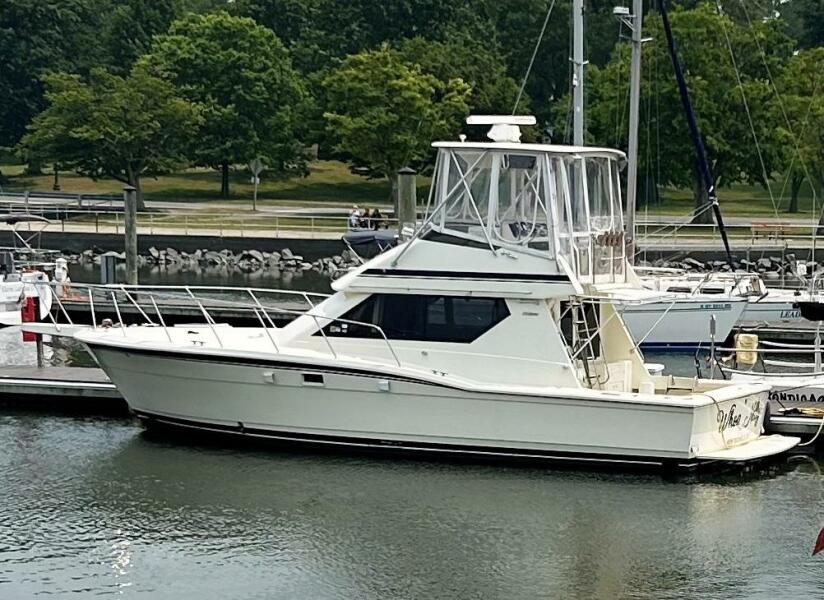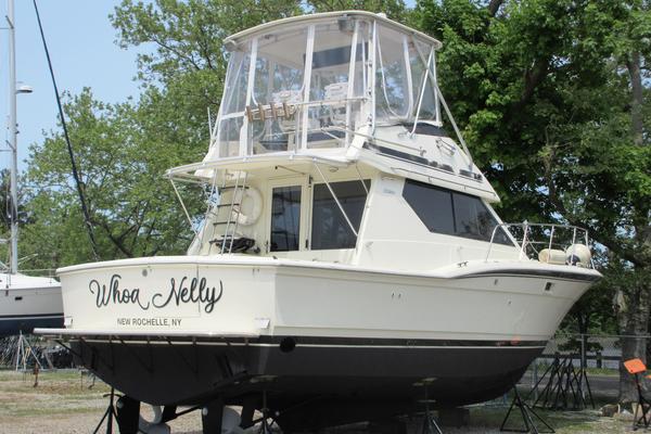 The WHOA NELLY is a 1990 model Hatteras 38 Convertible that was produced at the Hatteras Yachts facility in New Bern, NC. She's powered by the preferred DETROIT DIESEL DD 6-71TIC's that provide a total of 970 HP. A cruise speed of 22 knots can be expected and with a top end of 25 knots or so.