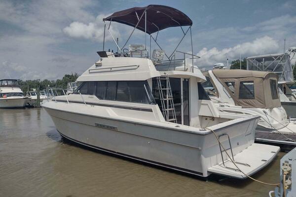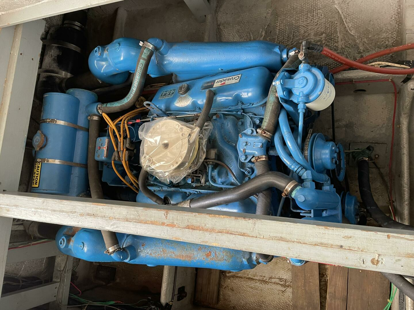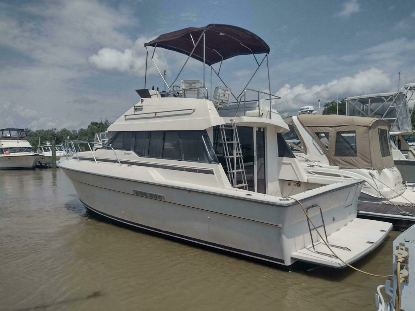This 34 Convertible has been on the hard for a couple years. The marina is selling it. It was kept in fresh water and is in okay/good condition. She has had a recent survey/sea trial and the boat ran well. Powered by Twin 454 Crusaders engines that are fresh water cooled with Borg Warner Transmissions and 739hrs. Built in Kohler 7.3 generator with only 215 hours. Spacious cabin with heat/AC. Refrigerator, microwave and dual stove cooktop. With a little attention to detail this 34 Convertible will be great for weekends away or just relaxing at the dock.
