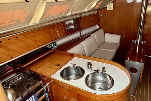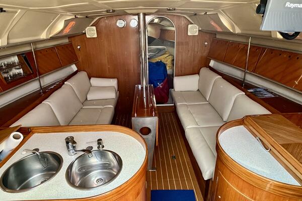 The beautifully maintained interior showcases classic varnished woodwork and an inviting layout that makes every sail feel like a getaway. Low engine hours and a well-documented maintenance history reflect a careful, knowledgeable owner. Outfitted with smart, sailor-focused gear, she’s clearly been loved by those who value both performance and practicality.