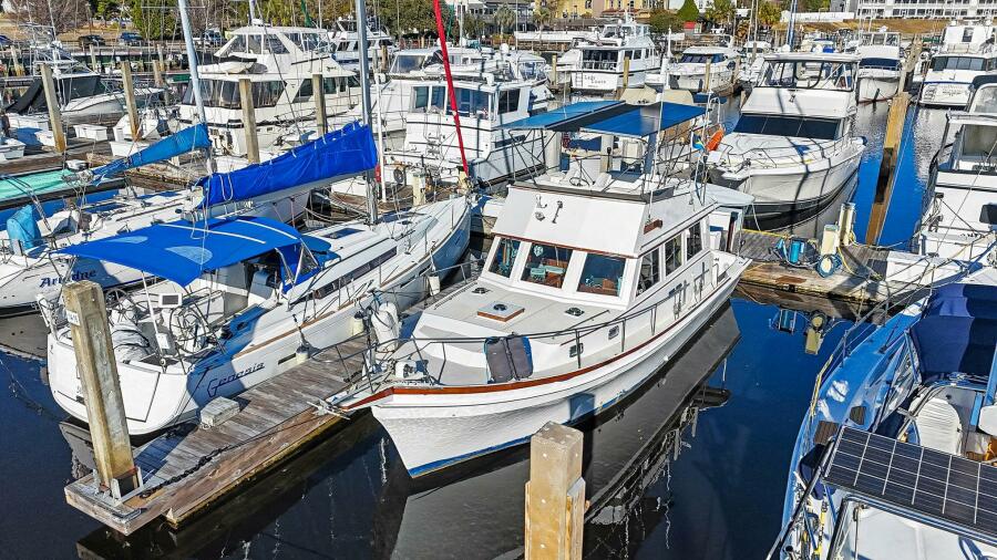 | Notable Upgrades: Major Mechanical, Electrical & Systems Upgrades Refurbished port transmission / gearbox 1,560W solar & Victron power system (previously detailed) 16,500 BTU Freedom Marine salon air conditioning system 12,000 BTU Freedom Marine forward air conditioning system Candensator added to forward AC, rerouted condensate line to through-hull AC seawater pump Gear shifting lines Seawater Pro portable watermaker Frizzlife onboard water filtration system All-new PEX freshwater plumbing Replaced blackwater sanitation lines New fresh water pump Fuel filter / water separator New engine room blowers New seawater strainers with stainless steel baskets All through hulls serviced Head through hull replaced Electrical, Lighting & Electronics LED touch lights throughout the vessel Engine room lighting upgrades JL Audio sound system with Fusion receiver New ventilation fans throughout Exterior, Deck & Practical Upgrades Bottom Painted Exterior teak refinished (excluding doors and steps) Window tinting New dock lines Interior Comfort & Liveaboard Upgrades New salon settee seating cushions & covers Salon window shades Galley sink and faucet Shower sump pump Toilet pump Door curtains |