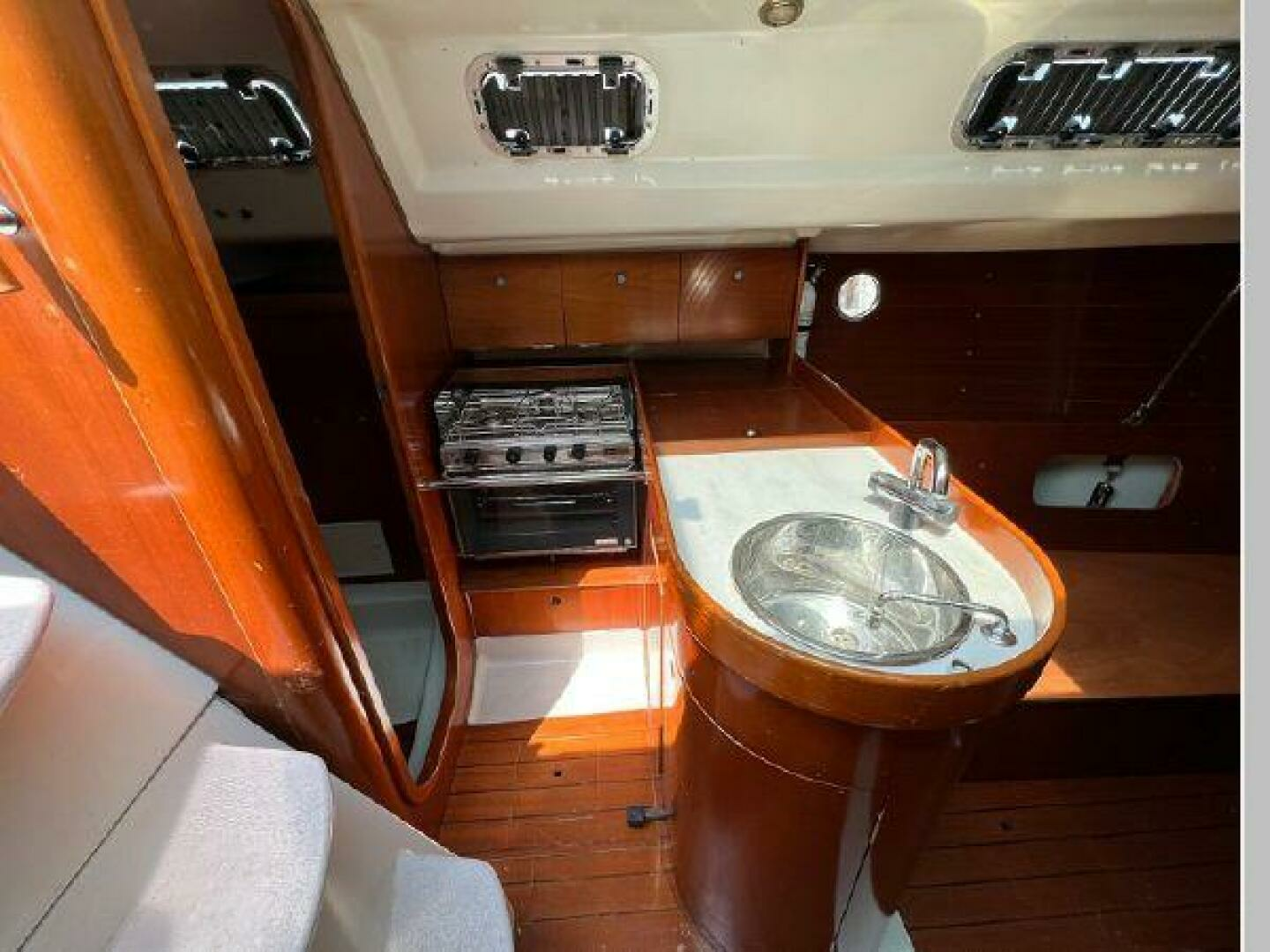 The galley is very nice for a boat of this size. There is plenty of storage space and she is well equipped;