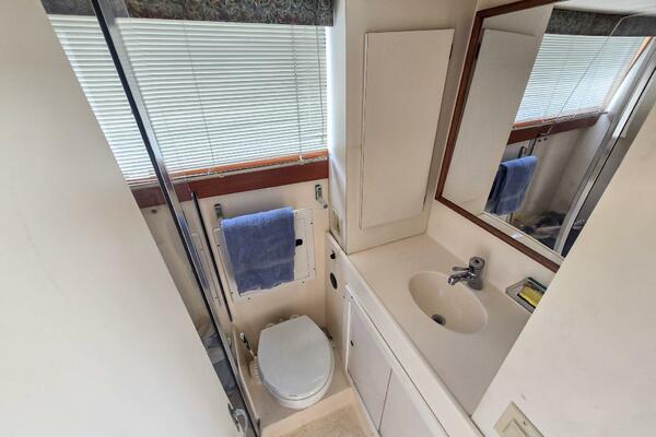 - Features a full head and a separate shower.