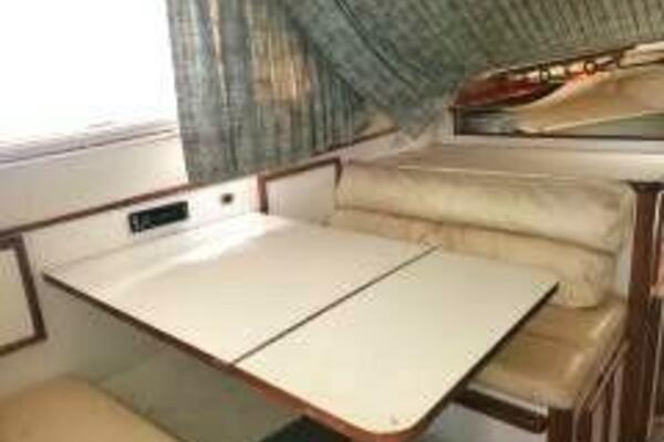 - A convertible V-berth for sleeping at night and a large settee that can also convert to a secondary sleeping area.