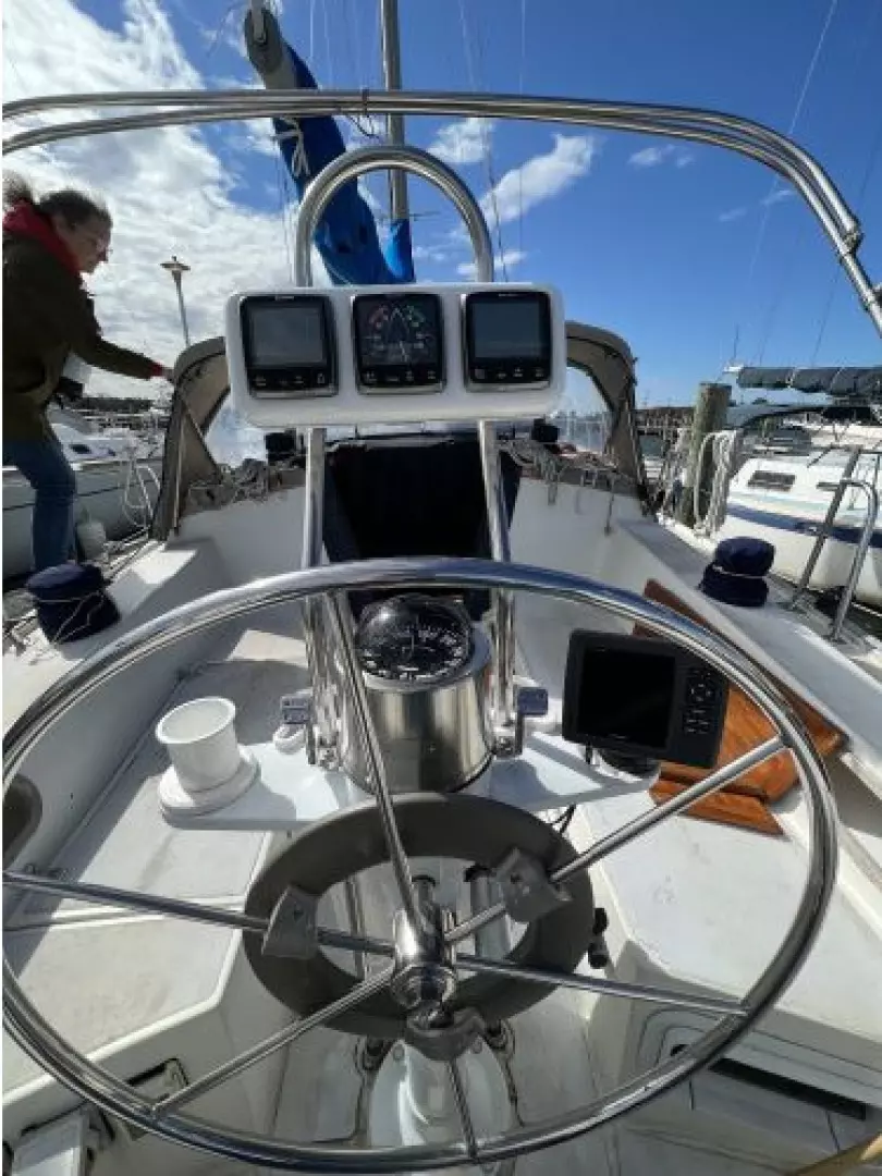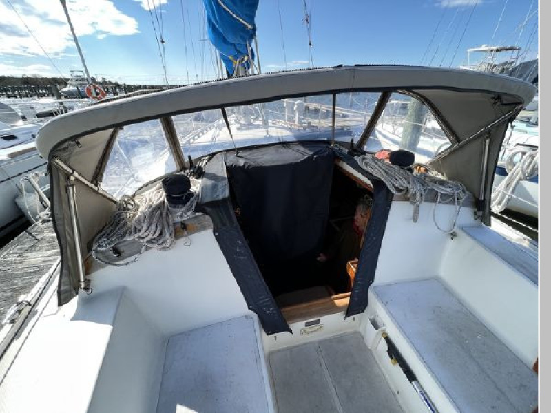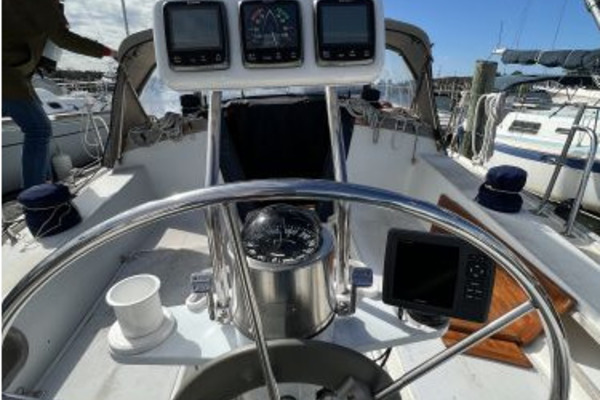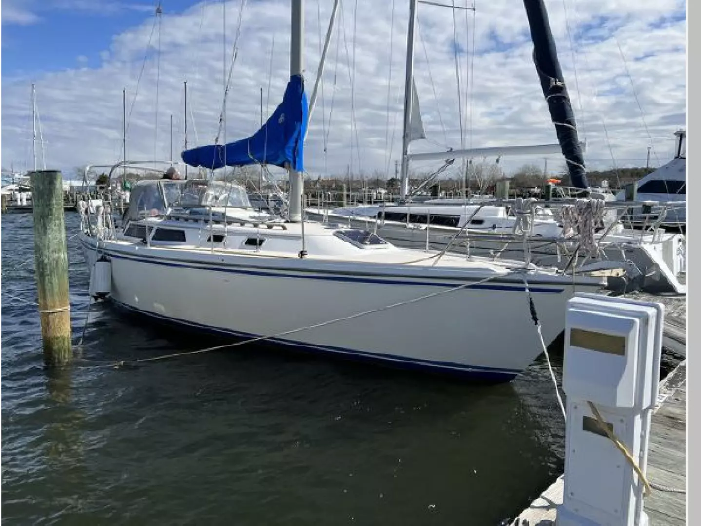 Tranquility is a late model MKI with the walk through transom and has been well maintained and upgraded. She is well outfitted with Reverse cycle air-conditioning and heat 15,000 BTU, Autopilot, Roller furling headsail, Universal dsl engine, bimini and dodger with connector, large galley, tons of storage and a warm and inviting interior. She is presently in Crisfield, Md. and will be moved up to Cambridge in the next few weeks. She is ready to cruise the Chesapeake and beyond.