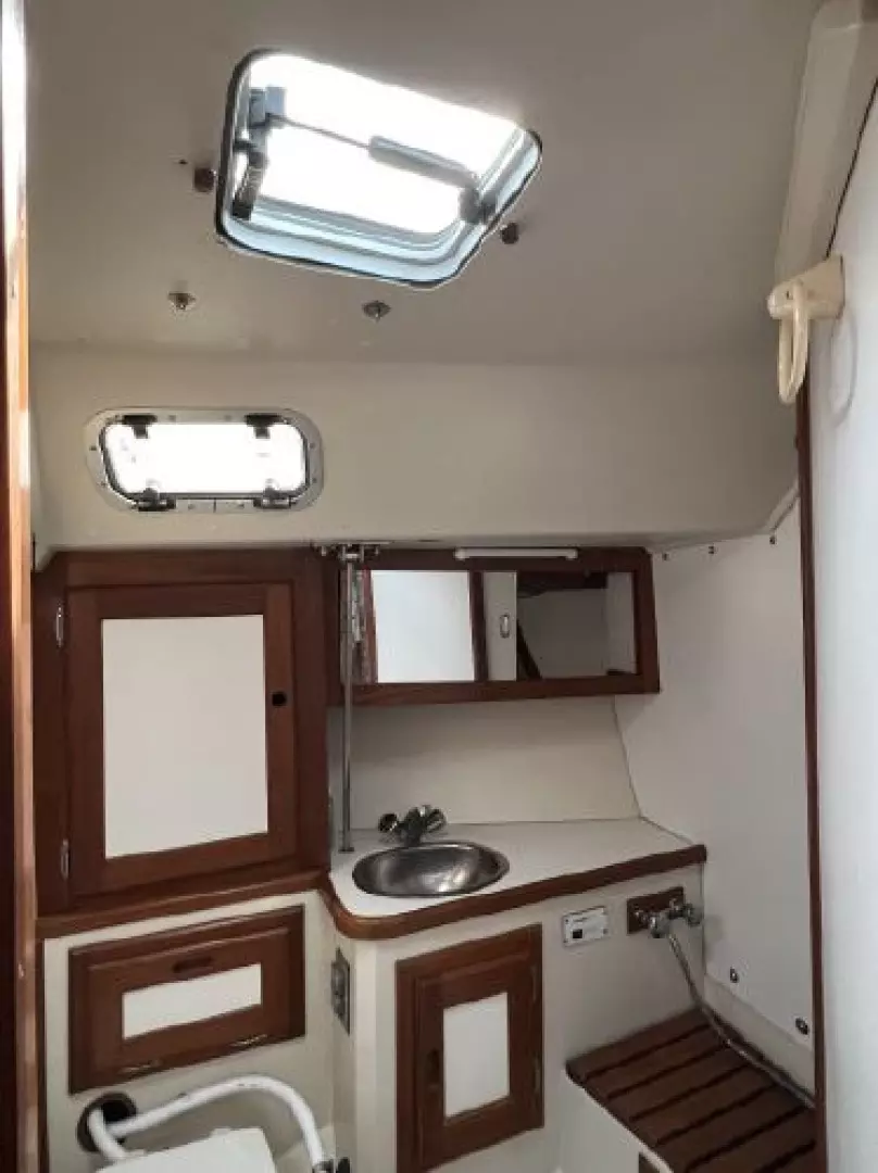 The Catalina 36 can be easily single handed. She has a large comfortable cockpit, and a spacious interior with two sleeping cabins and the ability to pursue cruising dreams. The Catalina MKI is built with seakindly moderate displacement hull that tracks surely and performs well in a variety of conditions. Her deck and trunk cabin is traditional and functional making it a pleasure to move around the foredeck. Cruisers love the storage space and the Catalina 36MKI is renowned for it.