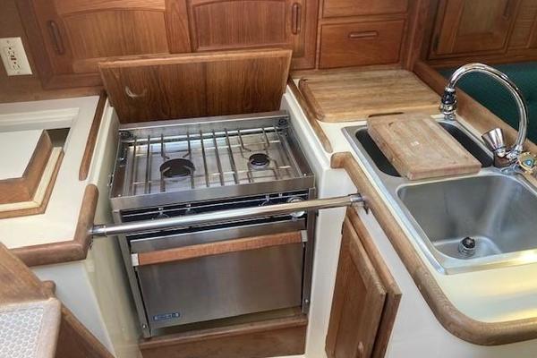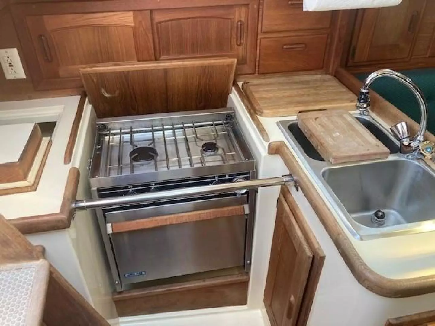 The galley is well thought out with lots of storage space in the drawers, cabinets and dish locker.