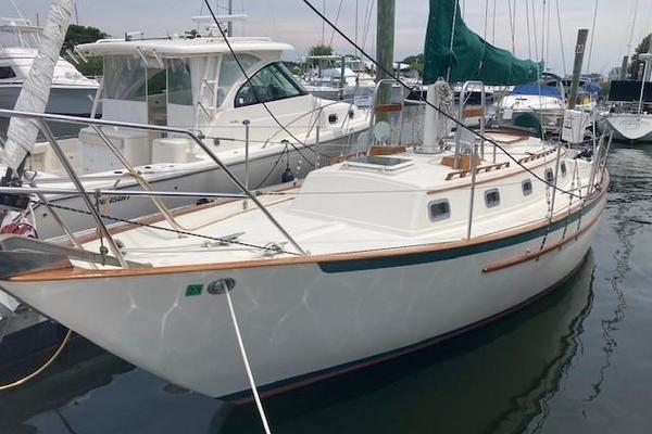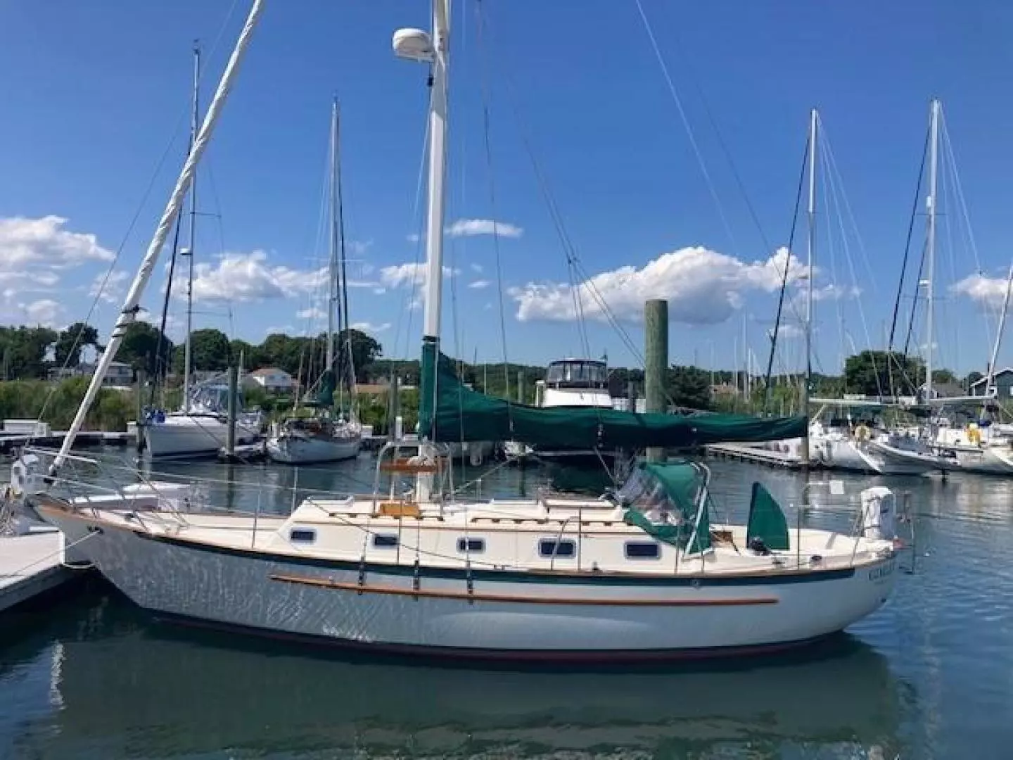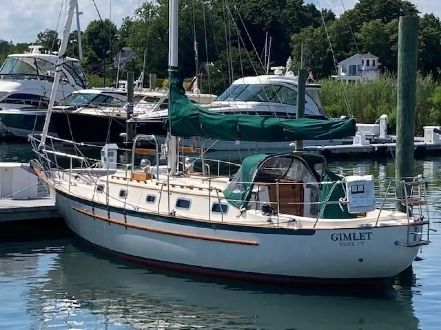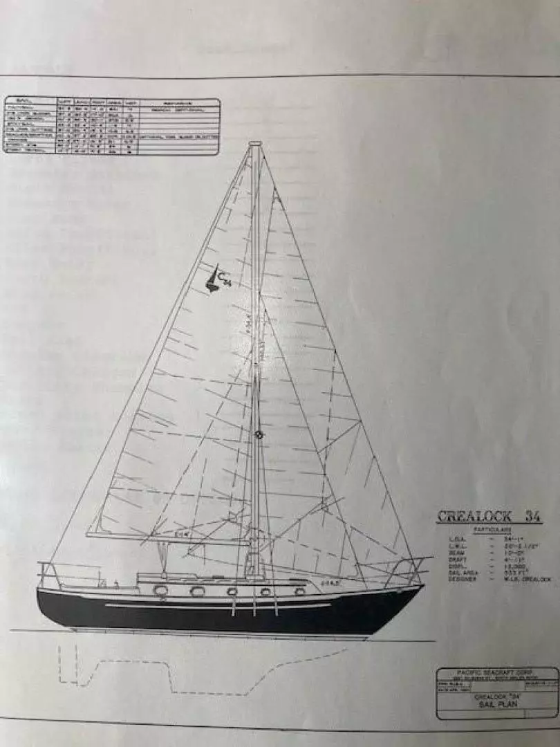 If you seek perfection the Creaklock 34 by Pacific Seacraft is a beautiful, well designed and responsive blue water cruiser. A quality built boat from her solid bronze fittings, teak joinery, to the hand lay-up hull she's impressive indeed.. Inside she is light, airy and spacious with 6'3" headroom a spacious salon, U shaped galley and sleeping for six. Gimlet is truly a must see boat that is clean, neat and well-kept. She shows beautifully with her graceful lines, canoe stern, white painted spars, green Sunbrella dodger not to mention her beautiful recent exterior varnish work.