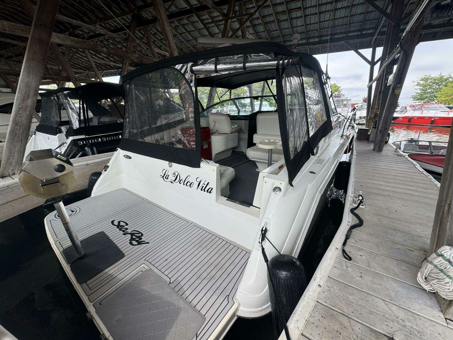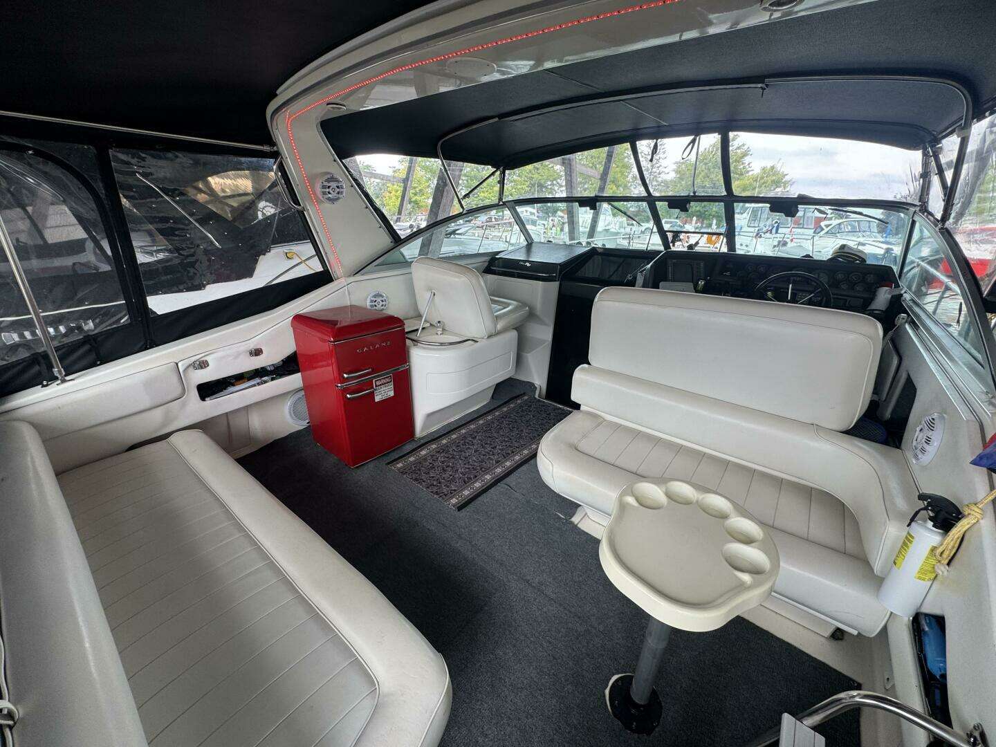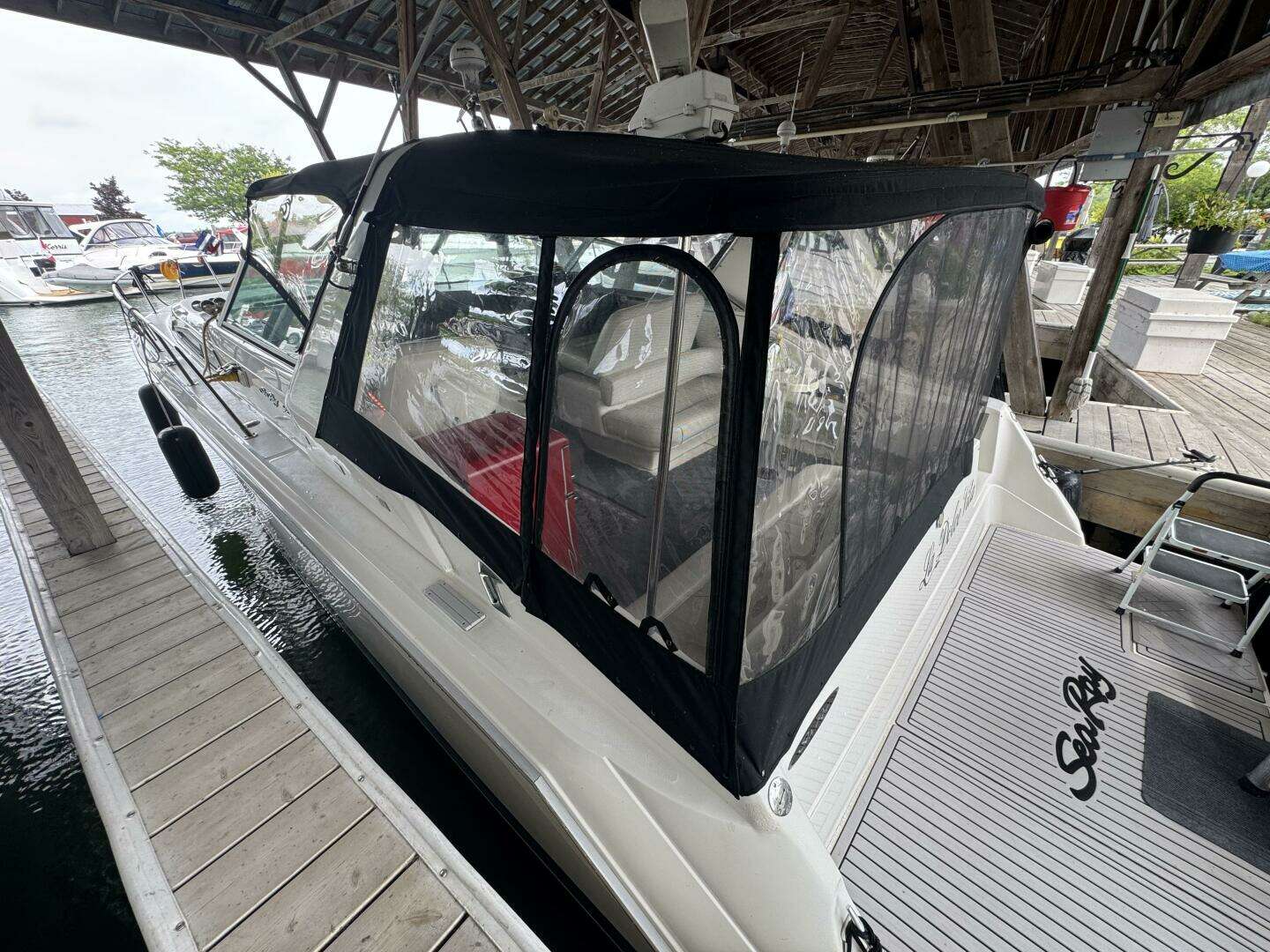 This 1992 Sea Ray 370 Express Cruiser is a prime example of Sea Ray’s reputation for quality craftsmanship! Powered by twin 454 MerCruiser engines with an on-board generator, this yacht delivers reliable cruising. A full canvas enclosure, replaced three years ago, provides weather protection, while a 2020 Garmin GPS and windlass anchor make for easy navigation and secure mooring. An extended swim platform finished with Sea-Dek has been added as well as a cockpit bar refrigerator.