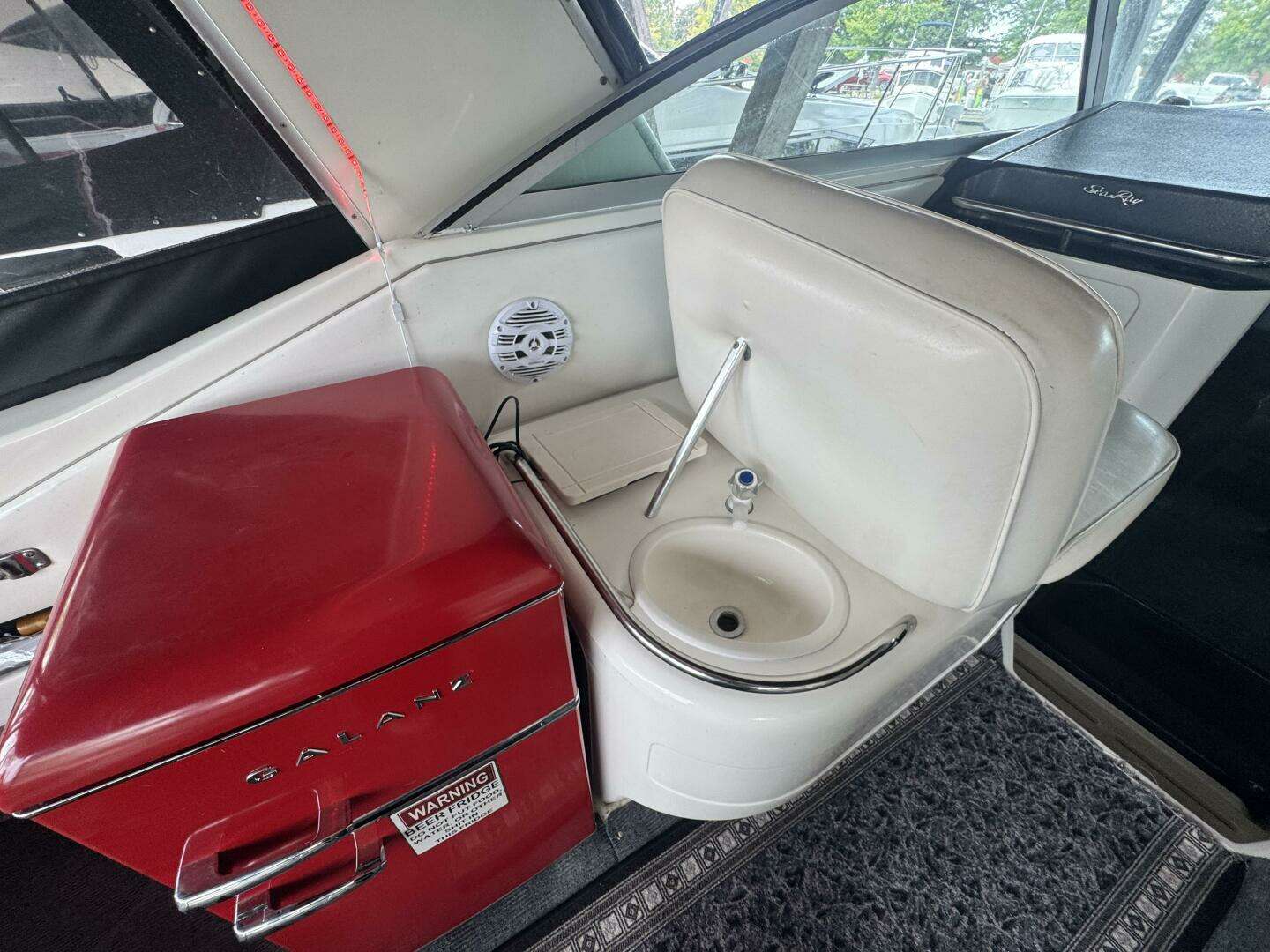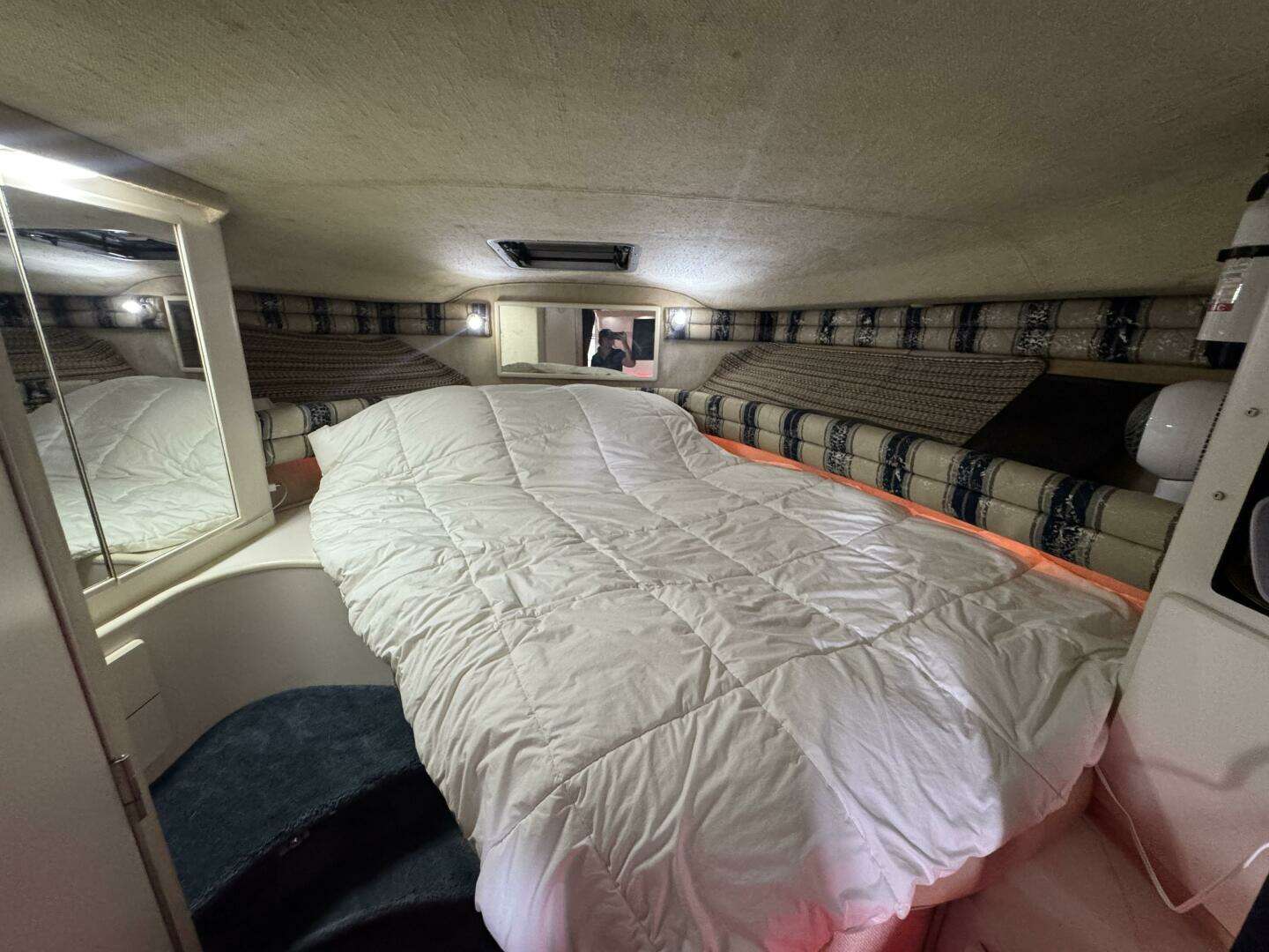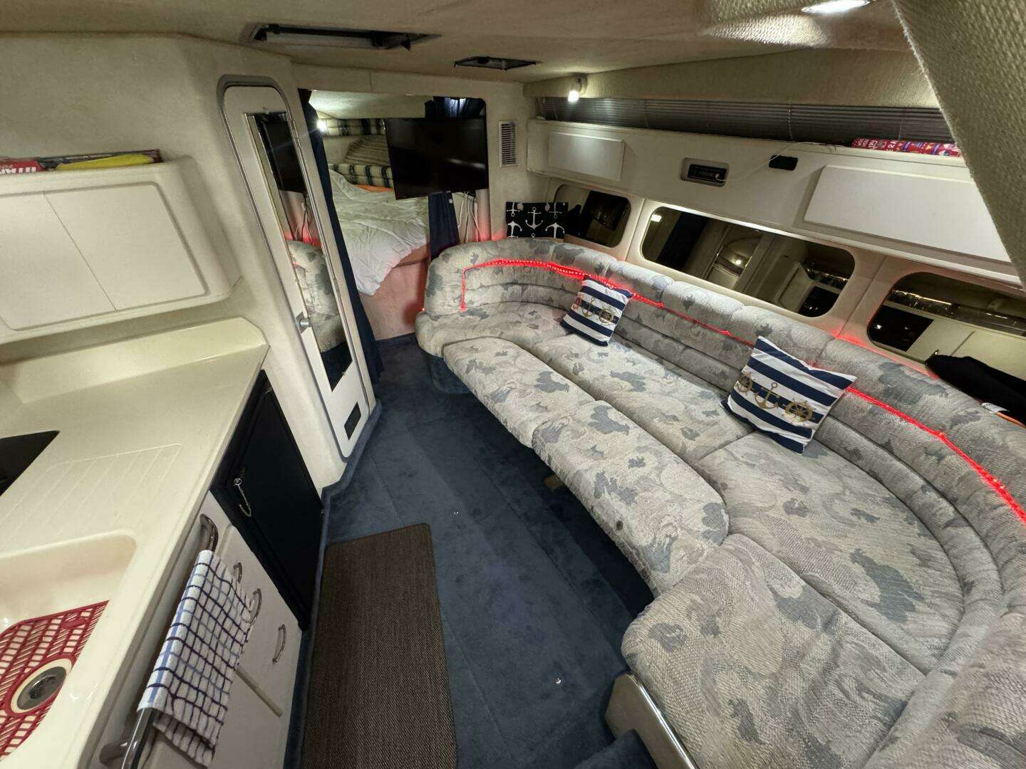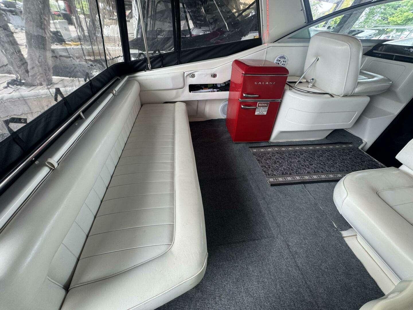 This 1992 Sea Ray 370 Express Cruiser is a prime example of Sea Ray’s reputation for quality craftsmanship! Powered by twin 454 MerCruiser engines with an on-board generator, this yacht delivers reliable cruising. A full canvas enclosure, replaced three years ago, provides weather protection, while a 2020 Garmin GPS and windlass anchor make for easy navigation and secure mooring. An extended swim platform finished with Sea-Dek has been added as well as a cockpit bar refrigerator.