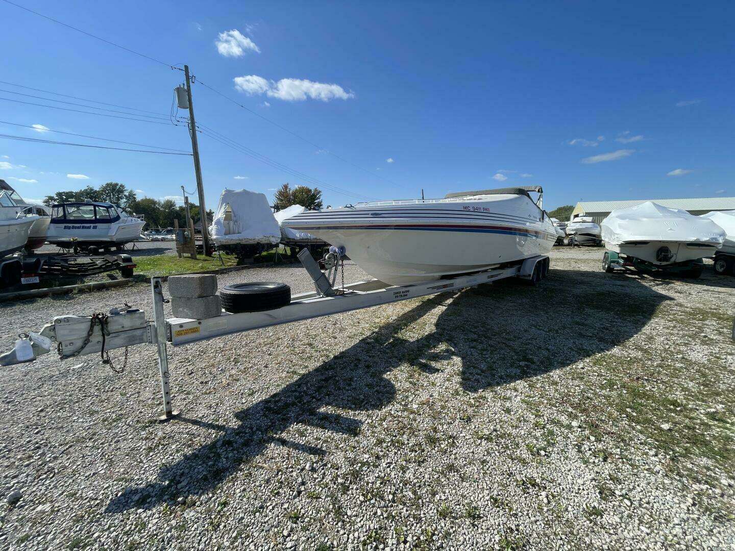 This 1993 Fountain 38 Sport Cruiser offers the perfect balance of offshore performance and comfort. Powered by twin MerCruiser 502 Magnums with Bravo 1 drives, this freshwater-only vessel has just 505 original hours on the engines. The boat showcases Fountain’s legendary deep-V hull design, delivering exceptional speed, stability, and handling in all conditions. Inside, the spacious cabin provides comfortable accommodations for extended weekends on the water, featuring a well-equipped galley, enclosed head, and convertible dinette. The cockpit is designed for both performance and relaxation, with ample seating and easy access to the swim platform. Included in the sale is a triple-axle aluminum trailer, making transport and storage simple and convenient.