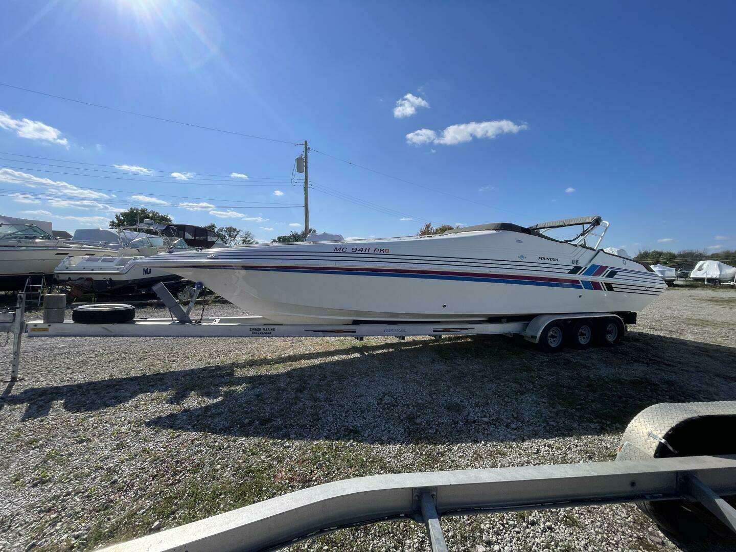 This 1993 Fountain 38 Sport Cruiser is an all–freshwater performance express with only 505 original hours on twin MerCruiser 502 Magnums with Bravo 1 outdrives. Well–maintained and lightly used, it includes a triple axle trailer and is located in New Baltimore, Michigan.