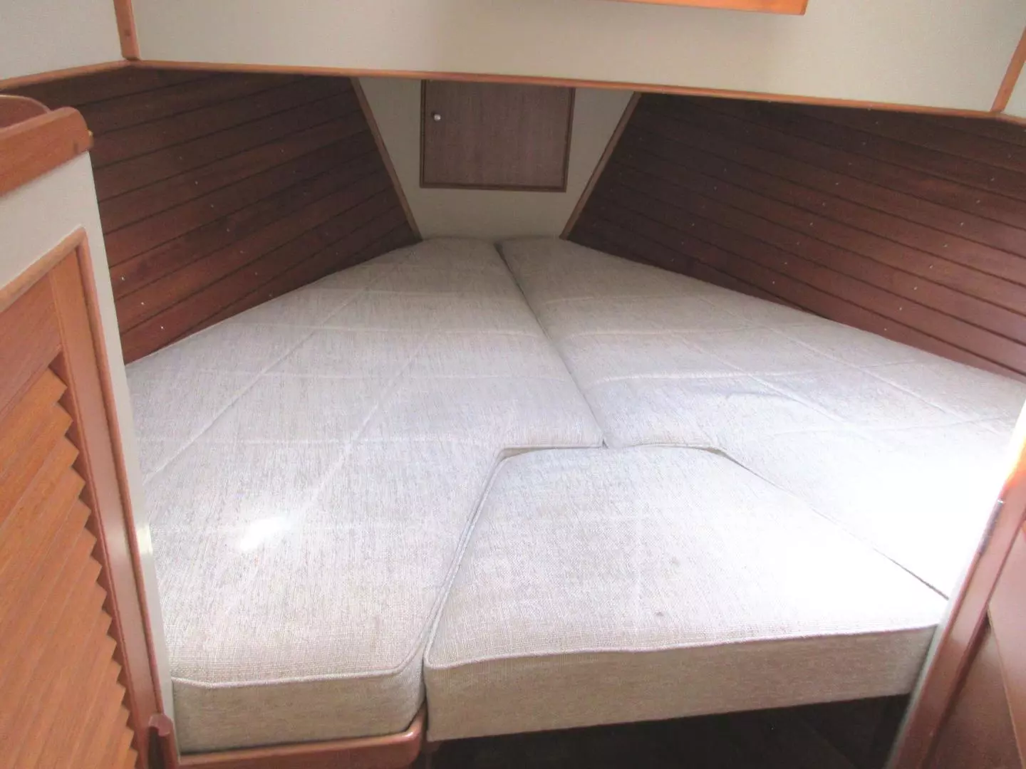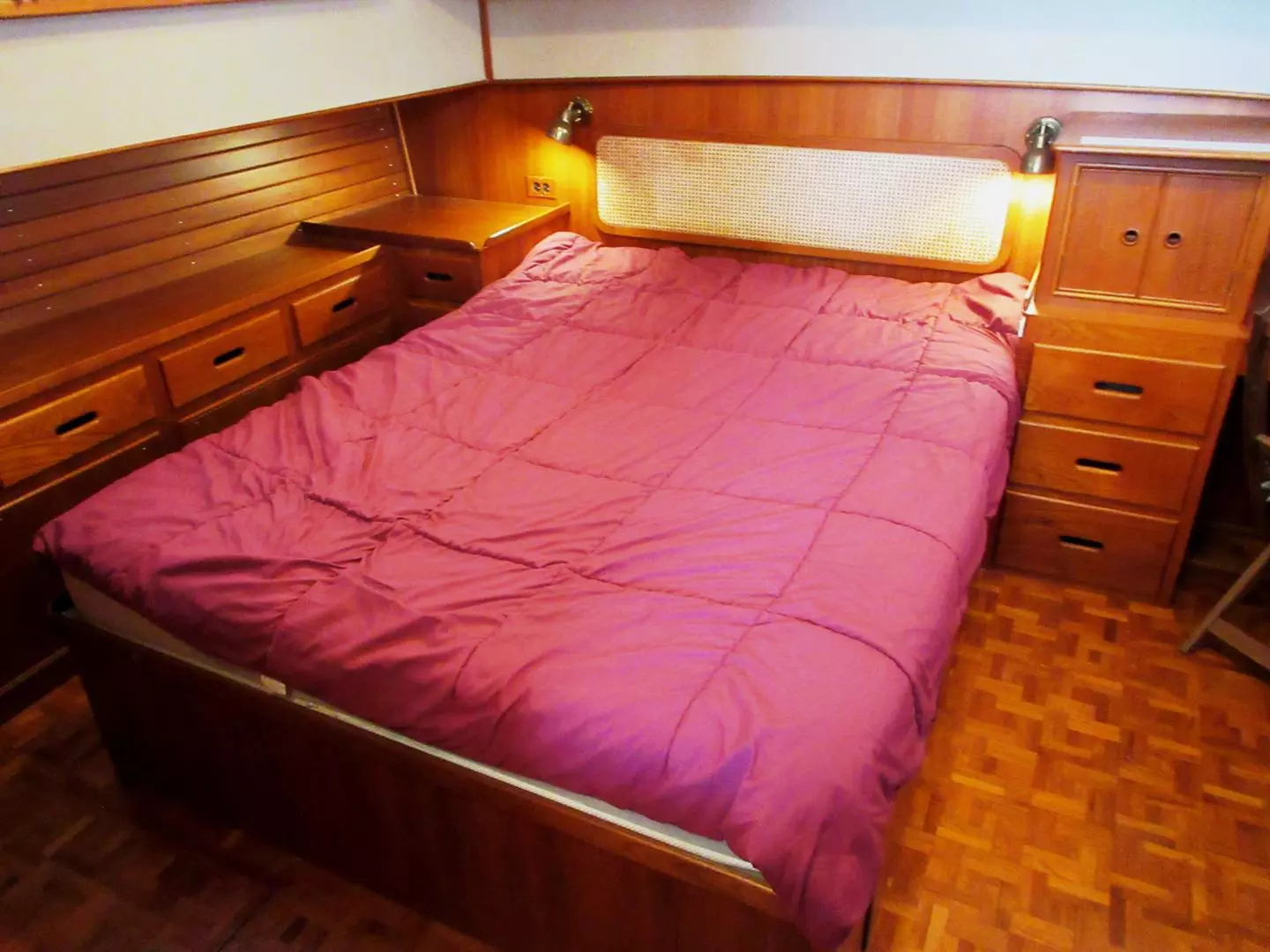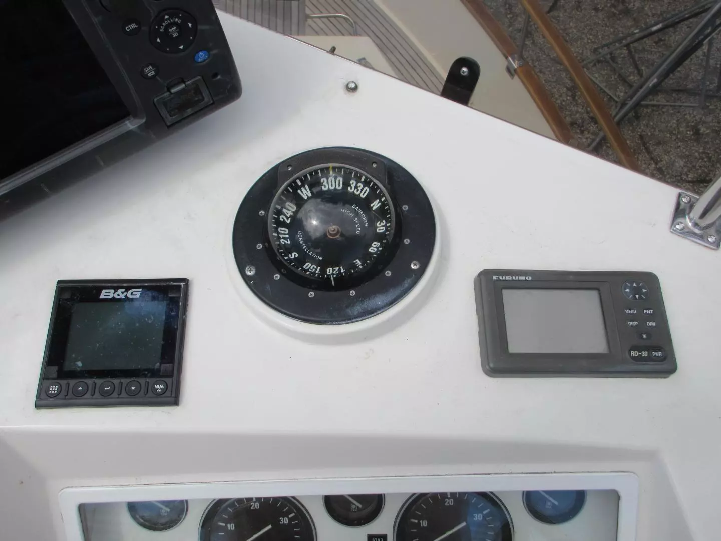 - Built-in GB deck box, forward of Cabin trunk, w/ teak top, teak interior grating & stainless steel brackets for fenders