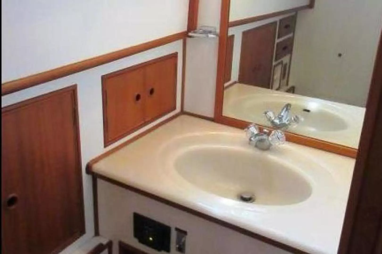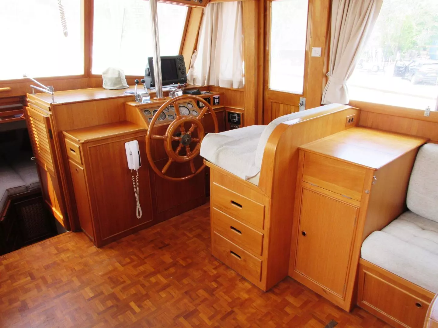 The GRAND BANKS 42 is constructed with a solid hand laid-up laminates of alternating layers of fiberglass woven roving and mat. There is an extended keel assembly for enhanced tracking stability and protection for the yacht's running gear.