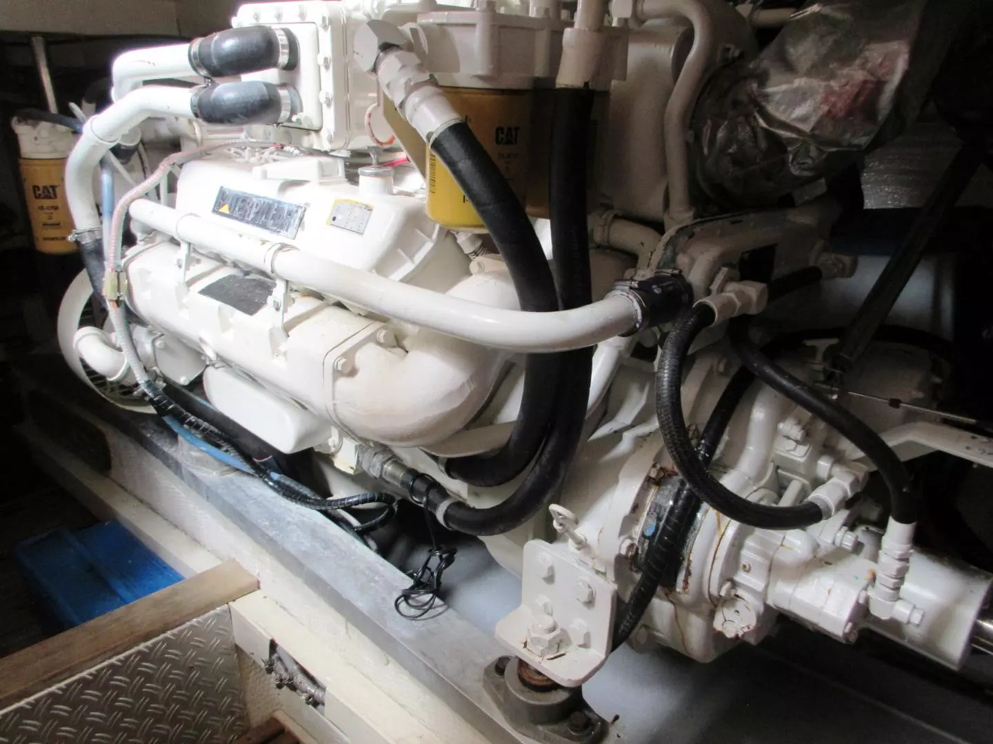 The EASY RIDER is powered by the Factory optional twin CATEPILLAR 3208TA V-8 FWC Marine Diesels that provide 375 HP at 2800 RPM's. With these engines as installed, she'll cruise at 14-15 knots and has a top end at W.O.T. at 2,600 RPM's of approximately 17 knots. At 1600 RPM.s, the EASY RIDER will cruise at 12 knots.