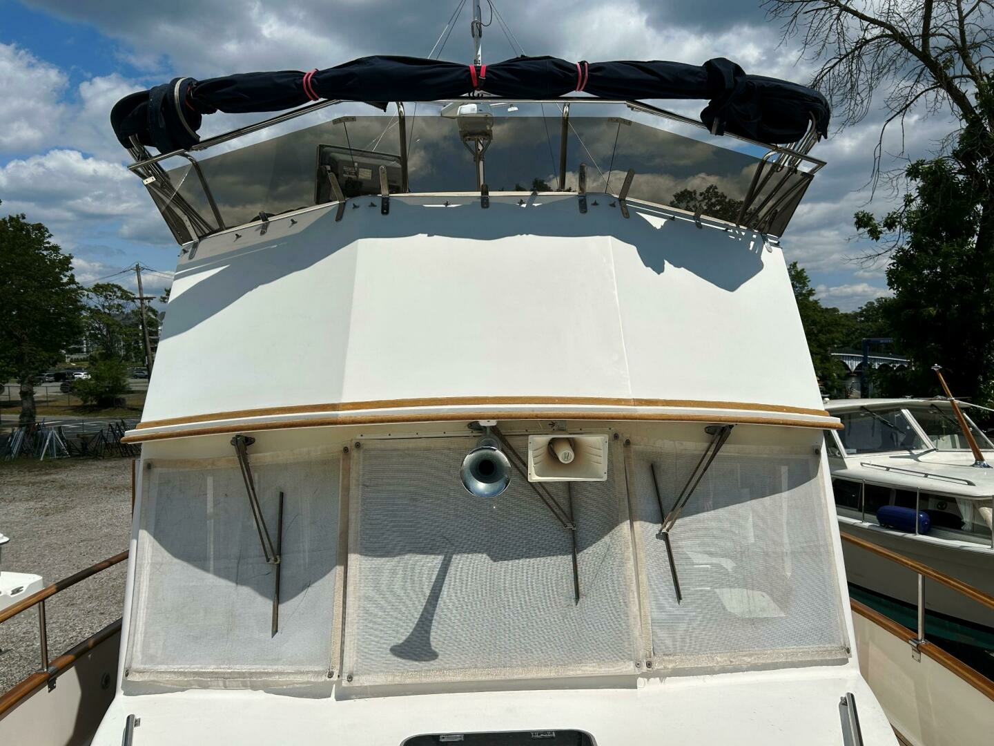 - Air Draft: 23'6" with the mast "up" (note: by lowering the mast, it can be reduced to 15'8" to the top of the Bimini and about 13'3" to the top of the flybridge windscreen by lowering the Bimini top)