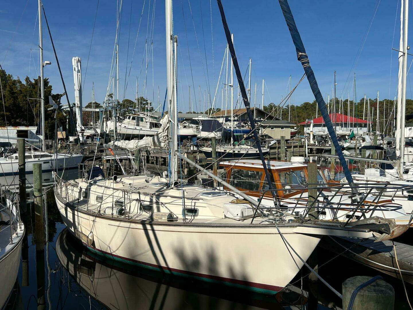 Recent upgrades include - chainplates replaced (Zimmerman 2025), mast removed/inspected/lights replaced (2025), much of the running rigging replaced (2025), all 3 AGM batteries replaced (2025), bottom paint (2025), through hull fittings reworked, engine refurb (2025) that included propeller replacement, mounts aligned, fuel injection pump and injectors rebuilt, fuel tank cleaned/polished.