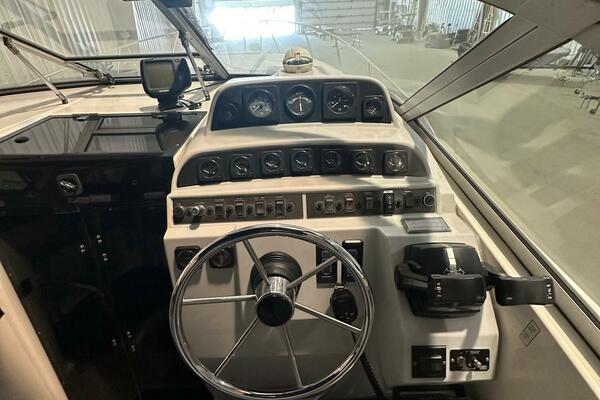 Equipped with 5.0L Volvo Penta stern drive engines, camper enclosure in good condition, fully galley, dinette sleeping accommodations for up to 5 adults, head with pump out and a wide beamed hull ready to handle the Great Lakes safely.