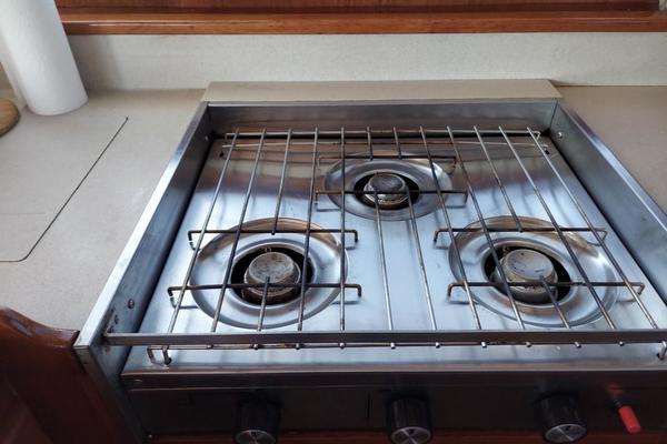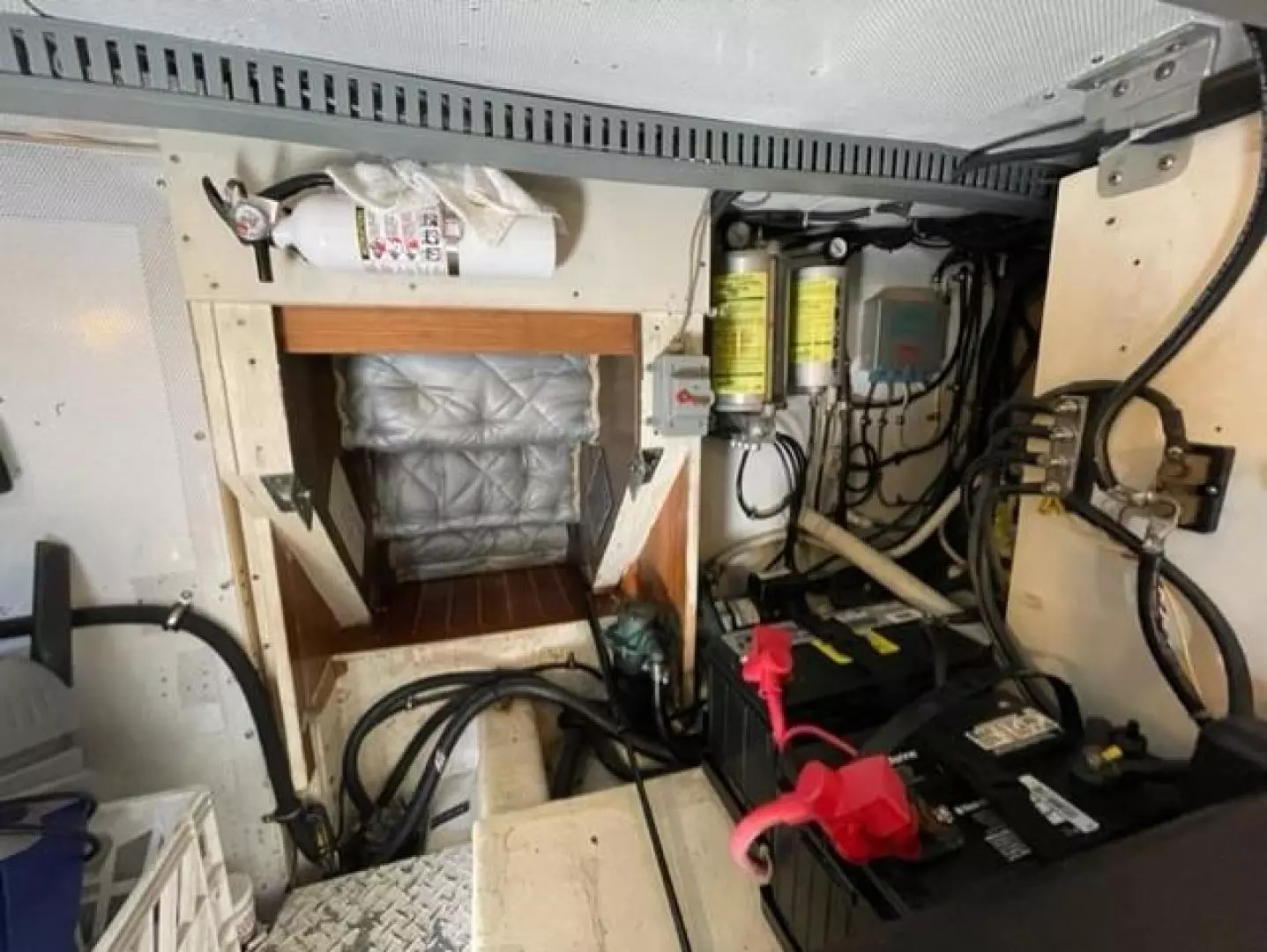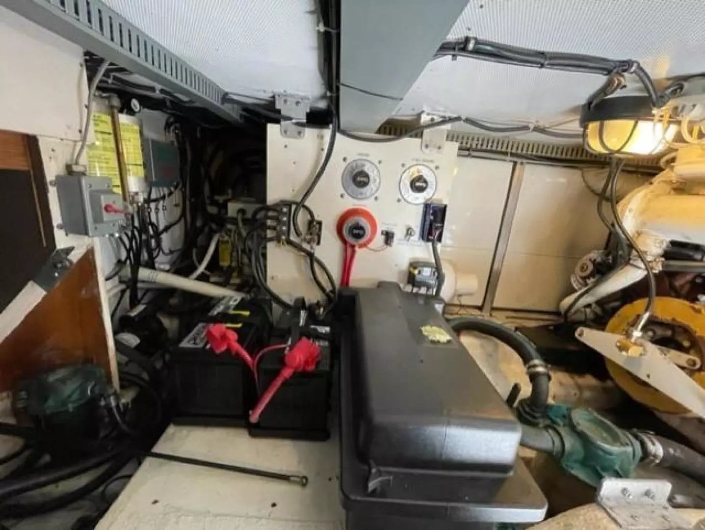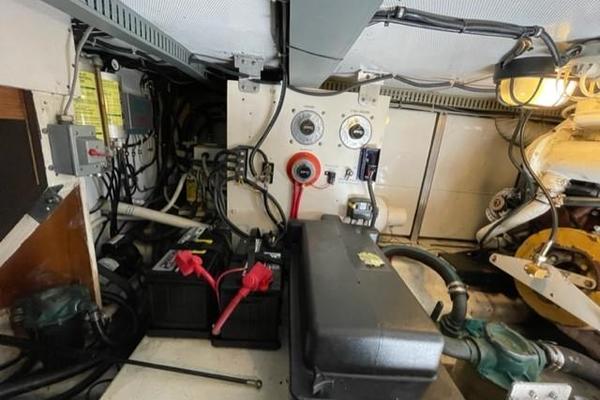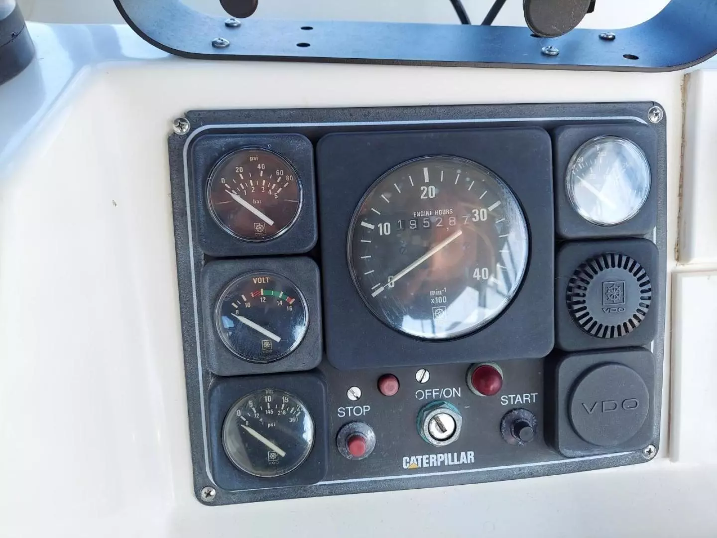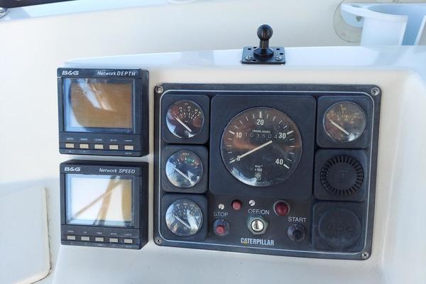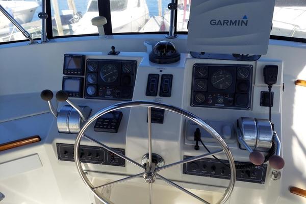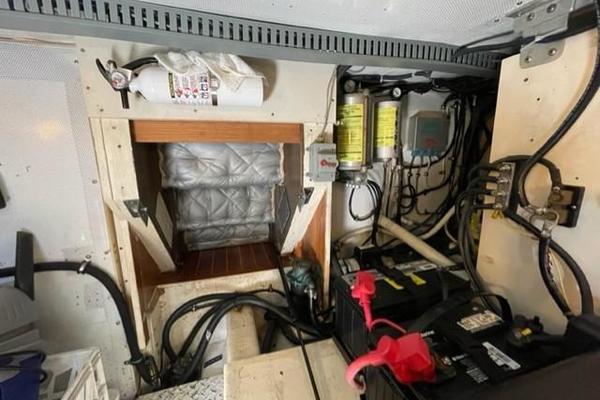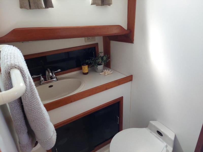 The Master stateroom is forward with a queen size island bed. Custom Shelving Port and Starboard. Aft to starboard is the master head with separate stall shower. Aft to port is the second stateroom with single beds sis by side. Aft again to starboard is the day head with sink, vanity and mirror. Up a couple of steps to the main salon with the lower helm to starboard and the spacious galley to port. Aft to port is a large U-shaped dinette area with a high low teak table. Beautiful brightwork throughout is in keeping with the classic Cape Dory style and quality. Up on the flybridge you have a center helm with 2 helm seats and an L-shaped settee behind.