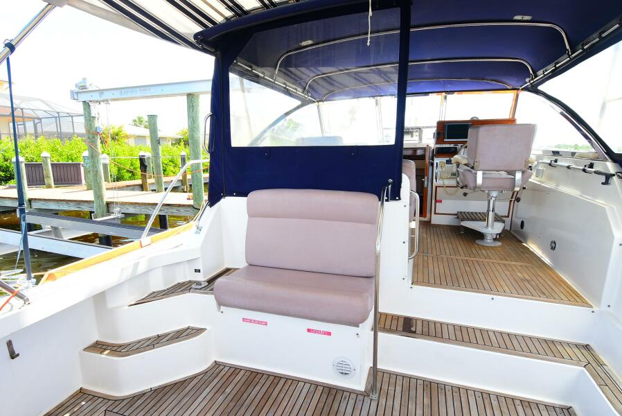 Teak cockpit with plenty of built in storage. Custom SS radar arch with cockpit floodlights and DGPS receiver. Wonderful