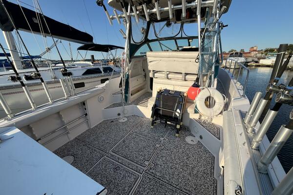 In addition to a modern helm and an array of fishing gear that would make a pro angler blush, Pipedreams features a layout that transcends fishing and enables weekend getaways. A large cockpit and roomy aft deck can accommodate many guests, and she will comfortable sleep four in her cabin belowdecks. The hardtop configuration keeps you out of the weather and lengthens your season, and the non-slip PVC decking system is grippy underfoot and easy to keep clean. Included is a triple-axle Continental trailer.