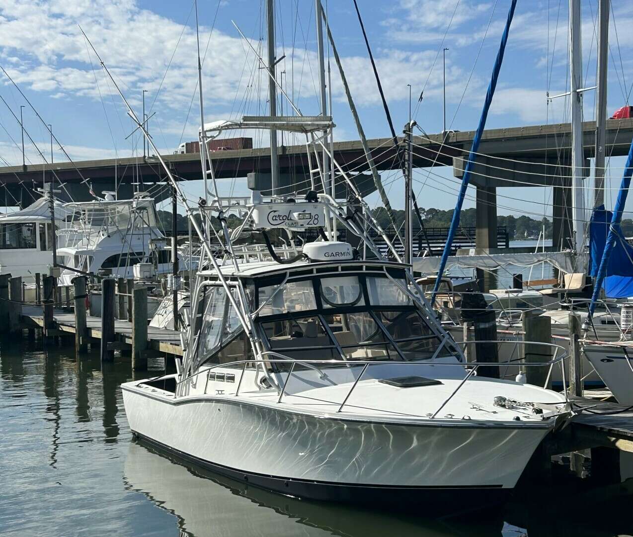This 1995 Carolina Classic 28 Express is a machine totally designed and precisely built for one purpose. This vessel is equipped with new 2008 Yanmar 315hp diesel engines with 1050 hours and will get you out to the fishing grounds comfortably in most sea conditions. Plenty of living room, a cabin, V-berth, galley with microwave, sink, refrigerator and table, full walk-in electric head with shower and storage areas throughout. Best of all is how easy she is to maintain. The most popular is the command tower, which encloses the lower helm station and provides a complete second station above.
