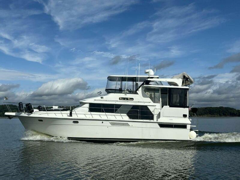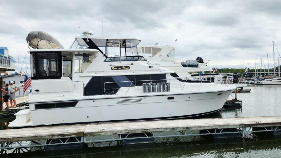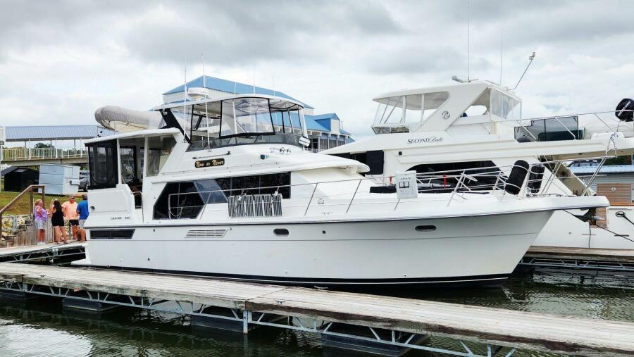 Now or Never, a 1995 Carver 440 Aft Cabin, has been meticulously maintained and thoughtfully operated. Powered by reliable Cummins 6BTA 5.9 diesels, she offers proven performance, spacious accommodations, and the comfort needed for extended cruising or the Great Loop.