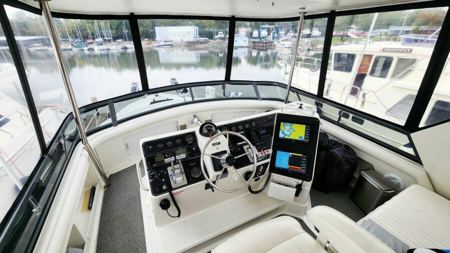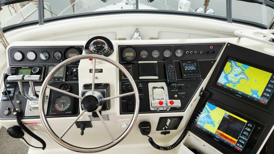 Recent service items include new impellers, Racor fuel filters, an updated Cummins heat exchanger, and regular anode replacements. The engines start cleanly, run smoothly, and are perfectly matched to the Carver 440 for efficient cruising on the Great Loop or coastal adventures.