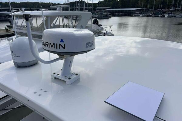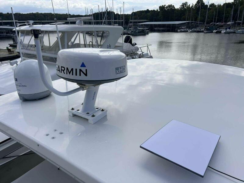 Step inside and you’ll find a spacious full-beam master suite, a welcoming salon with big windows, and a galley that’s been upgraded for real living. The aft deck with new Strataglass enclosure is perfect for morning coffee or sundown cocktails, while the command bridge features a full Garmin electronics suite integrated with a NMEA 2000 backbone—complete with autopilot, AIS, backup camera, and monitoring systems—so you can cruise with total confidence. And yes, she even has Starlink Gen 3 to keep you connected wherever you go.