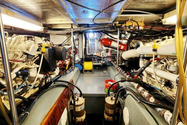 Beneath the decks, Now or Never is powered by a pair of twin Cummins 6BTA 5.9 diesels, rated at 370 horsepower each. These are the desirable mechanical versions—simple, robust, and well-known for their reliability and ease of service. With just over 3,600 hours, they have been meticulously maintained and come with a full history of oil samples, documenting the consistent care they’ve received.