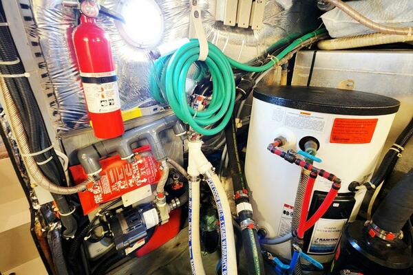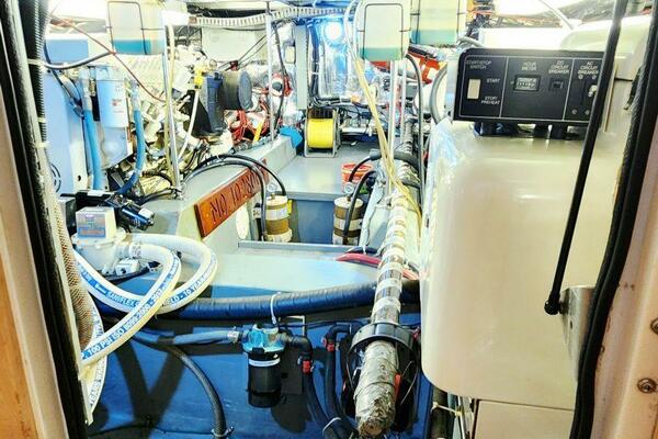 Supporting systems are equally well-kept. A Kohler generator provides dependable onboard power, backed by a modern Victron inverter/charger suite with AGM batteries. Fuel delivery has been refreshed with new lines and compliant Racor drain valves, while both Vacuflush systems and freshwater systems have been updated to ensure worry-free operation.