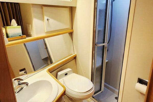 Practical, comfortable, and private, the master head is a perfect extension of the stateroom—a true liveaboard amenity that makes life on the water easier.