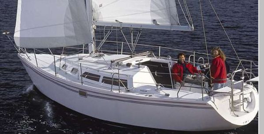 The Catalina 30 Mark III has been redefined by incorporating some of the best modern features of the popular C-270 and C-320 designs. The transom and cockpit areas reflect the most significant refinements. The new stern section is now dramatically wider at the deck and curves gracefully to form a very functional and spacious boarding platform. The already famous C-30 cockpit is now even more comfortable than ever with wider coamings for outboard seating and new observation seats built into the stern rail. Low maintenance materials have been used extensively to give you more time to enjoy your C-30. New stainless steel traveler supports improve visibility and reduce friction on halyards. The Catalina 30 Mark III shares the under body and rig of earlier Catalina 30s, and is eligible to participate in Catalina one-design events and Class Association activities. Below deck, the layout that defined a modern classic has remained true to its heritage, but has become even more comfortable and functional with the addition of several thoughtful improvements and subtle refinements. The galley has been made even larger with the design of new custom countertop surfaces. With the larger counter space has come increases in size and number of cupboards and drawers. An all new dish and cup storage rack better organize often used items. Varnished teak cabin surfaces are accented by polished brass light fixtures. Natural light has been increased through the addition of three fixed ports in the hull. As with all Catalinas, there is an extensive list of custom equipment, including a choice of wing or fin keel and tall or standard rigs.