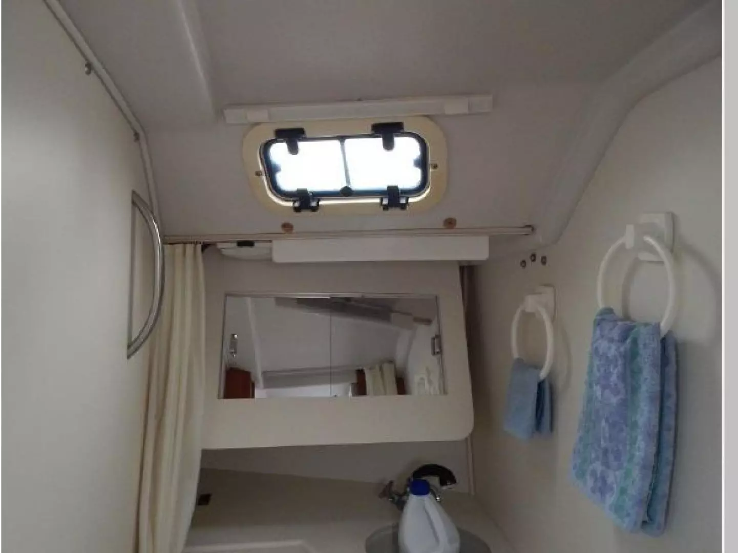 There are 2 overhard hatches, 4 opening ports and 7 fixed ports for light and ventilation.