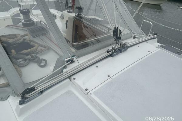 Shari is a David Pedrick designed, Tilottson-Pearson built 1995 40' Freedom 40/40. She offers a Yanmar 47 HP auxiliary, Freedom 2,500 watt inverter, Balmar 170 amp alternator, reverse cycle air conditioning/heating system, composite mast and aluminum boom, Mack Sails Mainsail stack pack, Harken roller furler, traveler and winches, sugar scoop transom and pass-thru, 2 stateroom 2 head layout with the aft head including an enclosed shower.