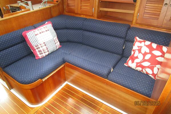 Shari offers a stateroom forward with a v-berth and insert, a stateroom aft with a queen size berth; and the salon offers convertible seating double size berth and a single size benchseat/berth to starboard. The forward stateroom has an enclosed head and the aft head includes an enclosed shower.