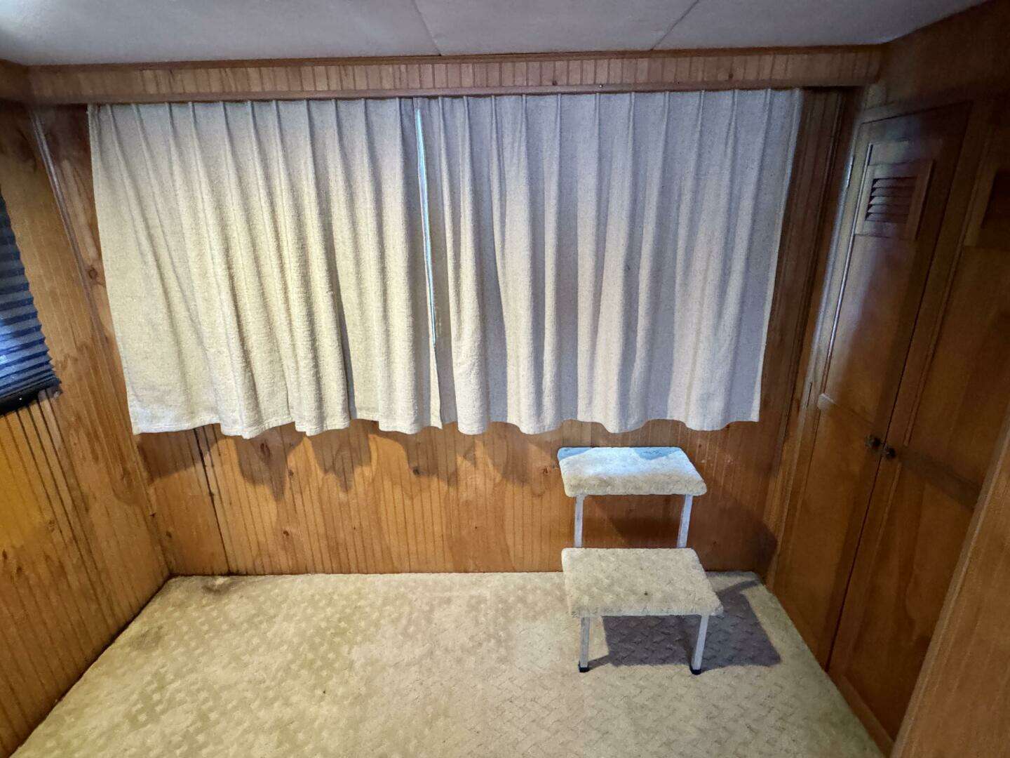 The remainder of the cabin aft of the galley is meant for a master stateroom - a bed is not included, buyer may furnish to their needs. A large hanging closet with some integrated drawers is in the port side aft corner.