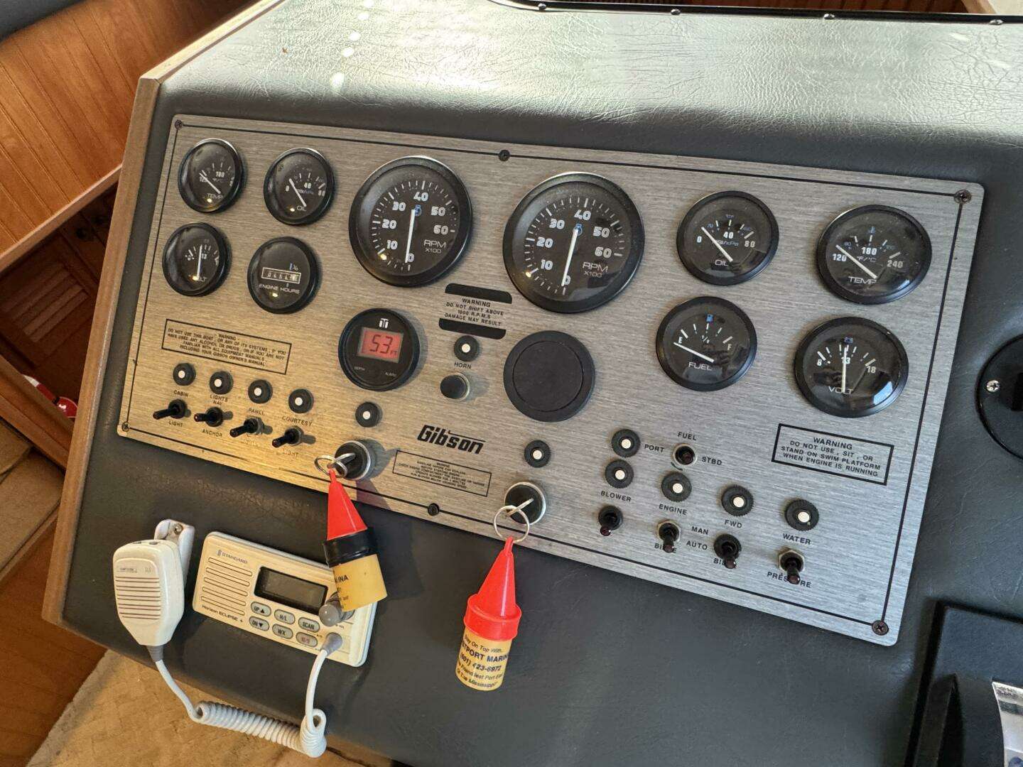 Lower Helm: Standard Horizon VHF Radio, Depth Finder, Ritchie Compass, Remote Spotlight Controls,