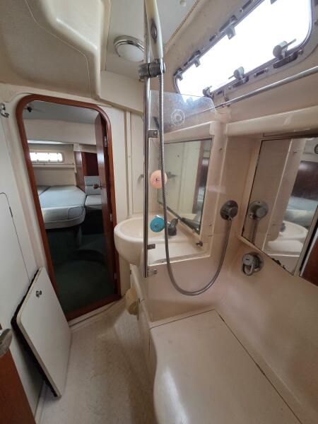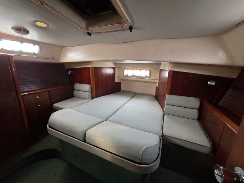 - Forward v-berth cabin with 2 single that convert to a double berth