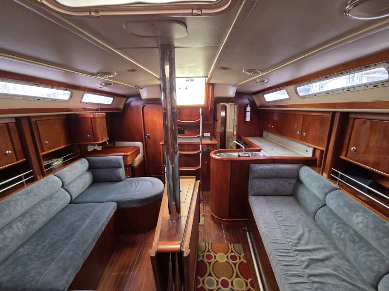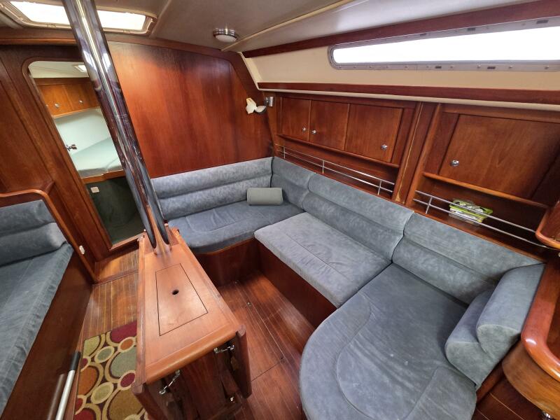 - Large main saloon with folding dining table
